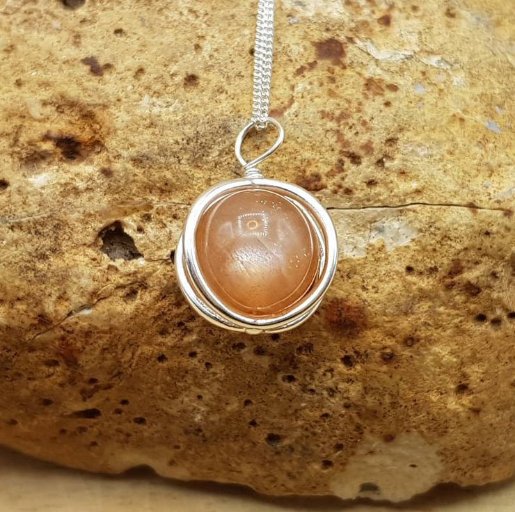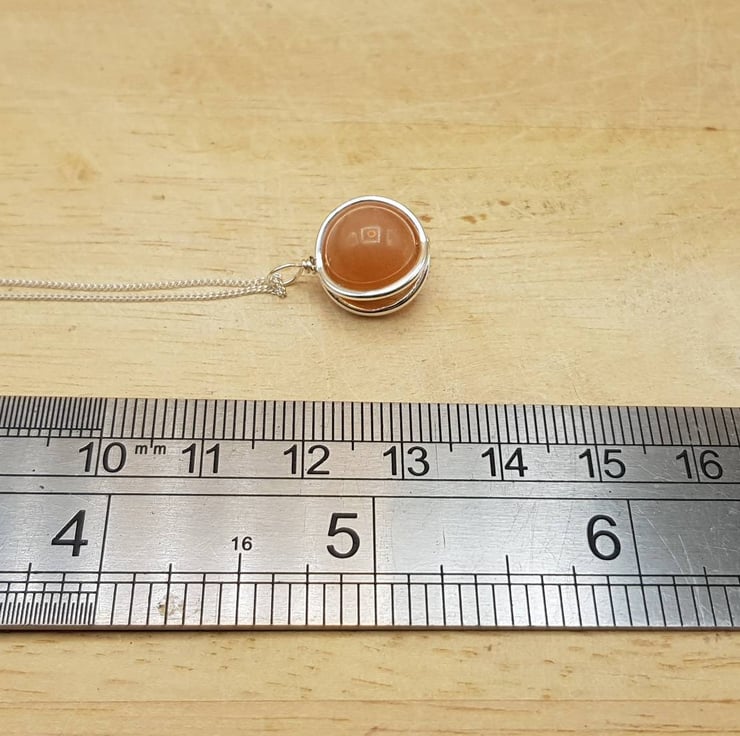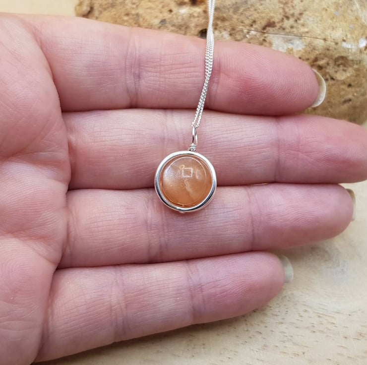 This is a small sterling silver 3d circle frame Sunstone pendant necklace.