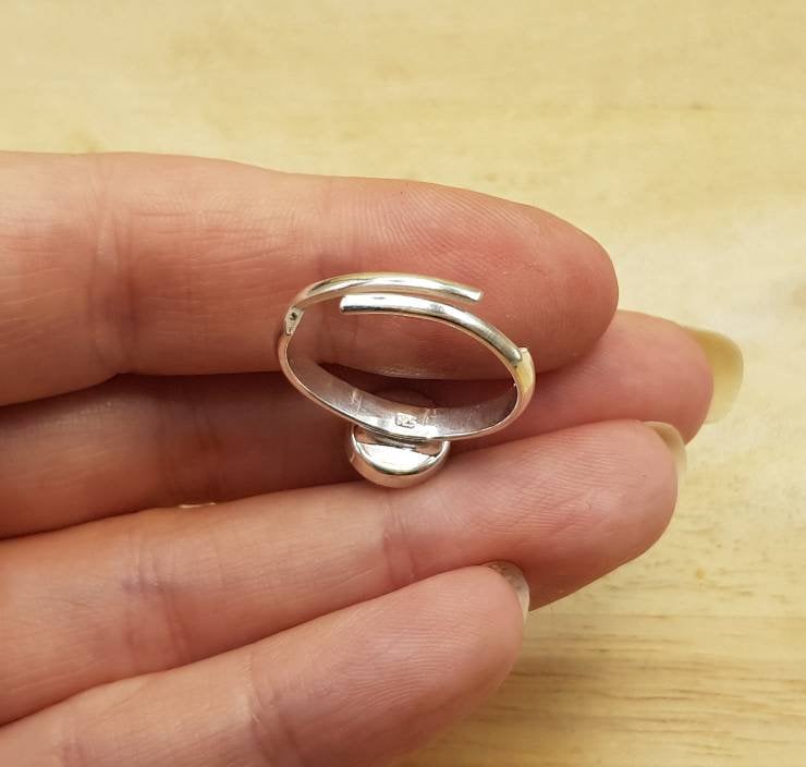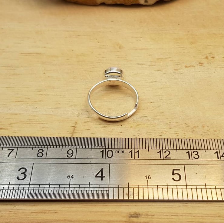 Sterling silver ring is adjustable so should fit most ring sizes.