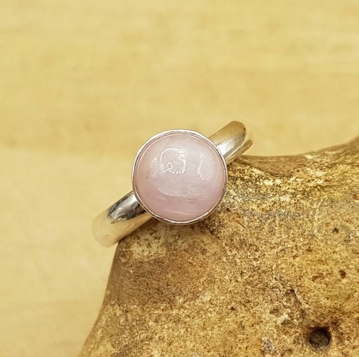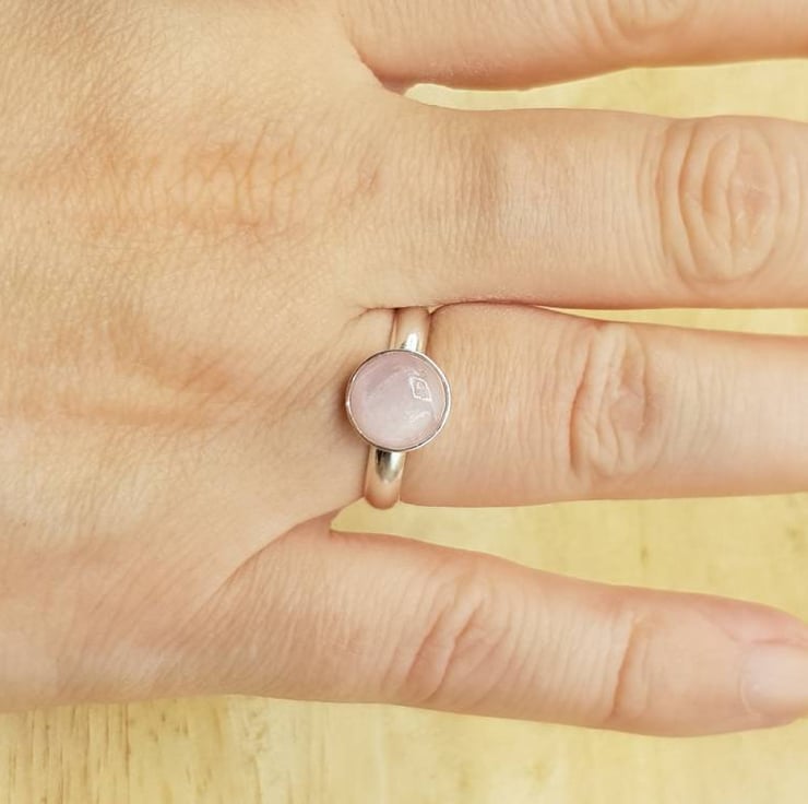 This is a women's minimalist sterling silver round pink Kunzite adjustable ring.