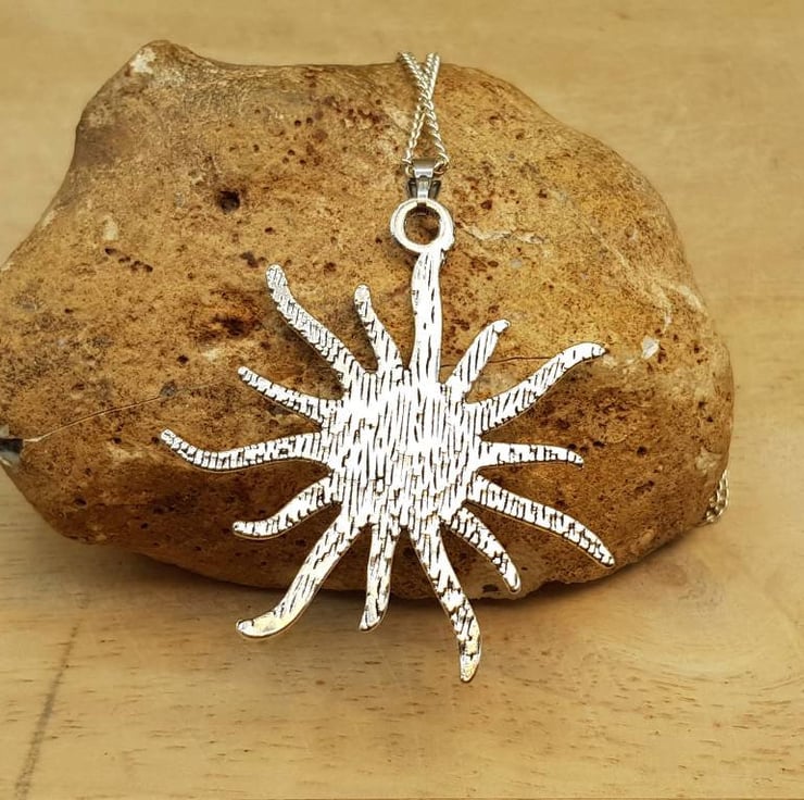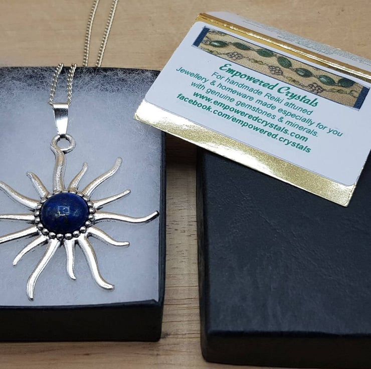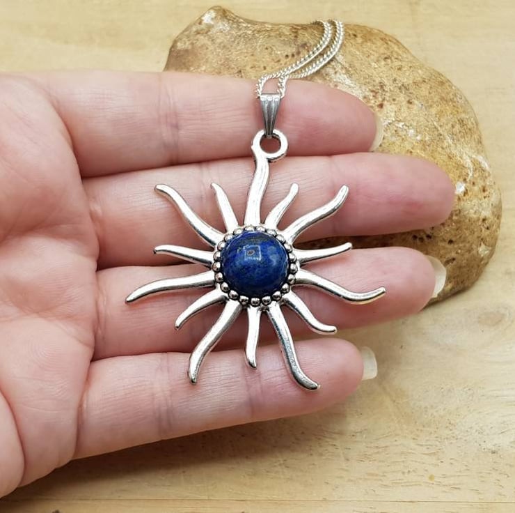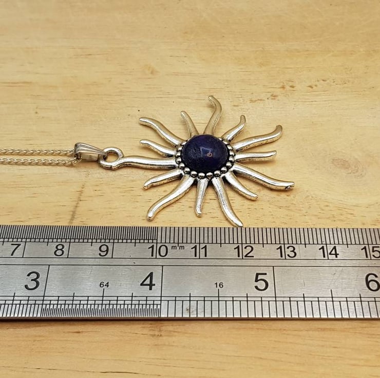 This is a large silver plated Lapis Lazuli sunburst pendant.