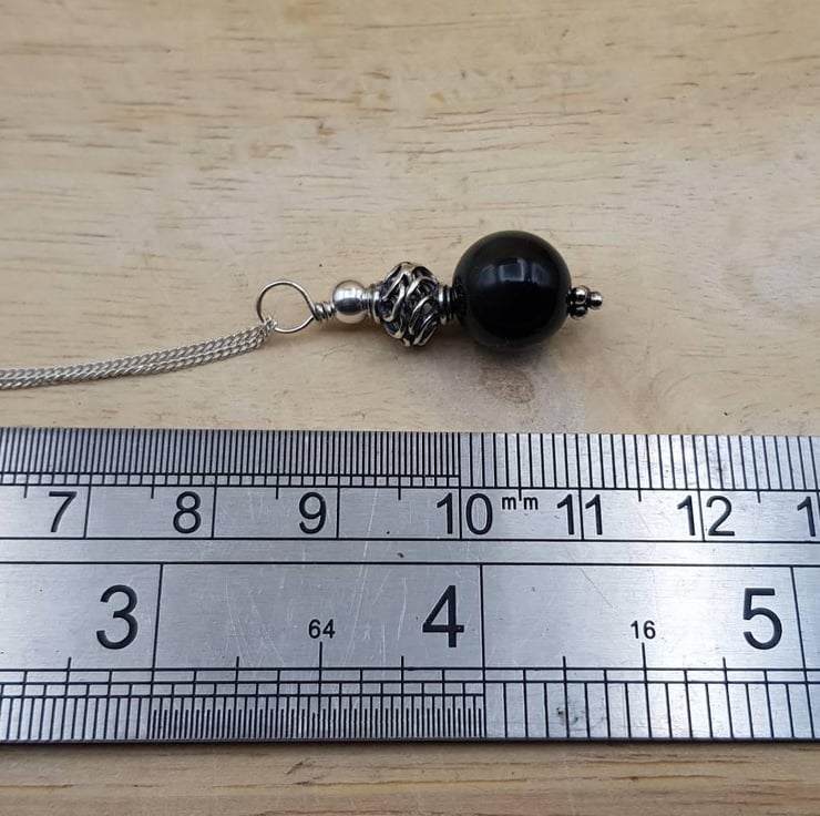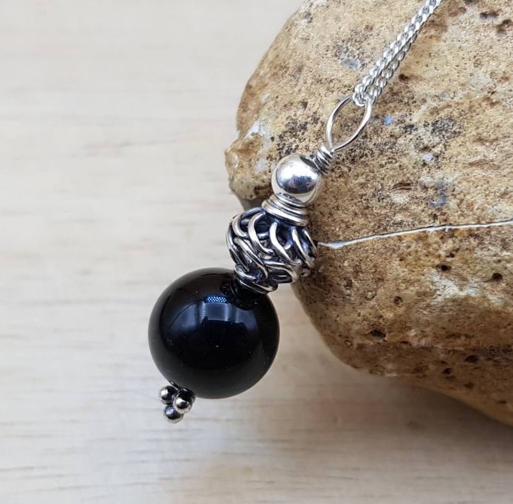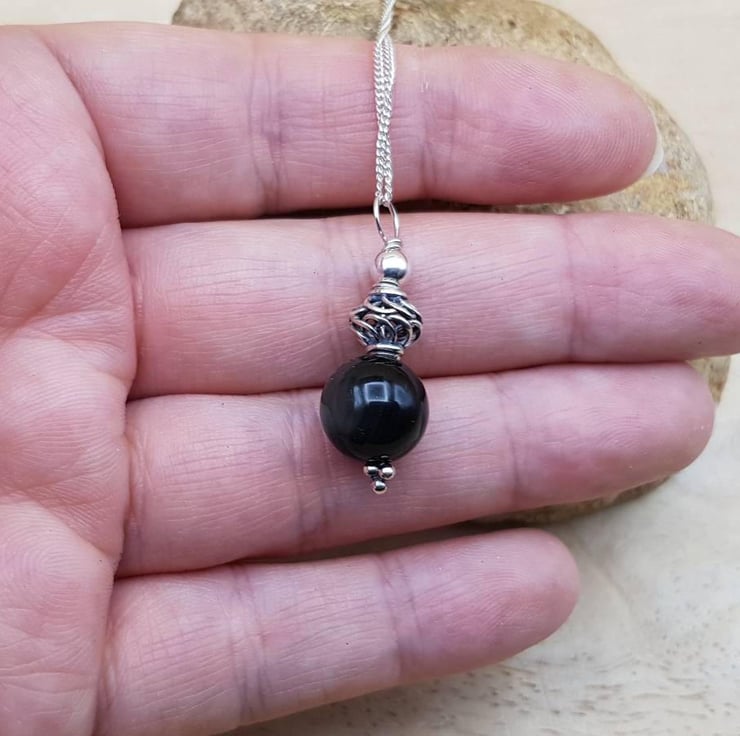 This is a silver rainbow obsidian pendant. This necklace would make a great present for a woman that loves handmade minimalist gemstone jewellery.