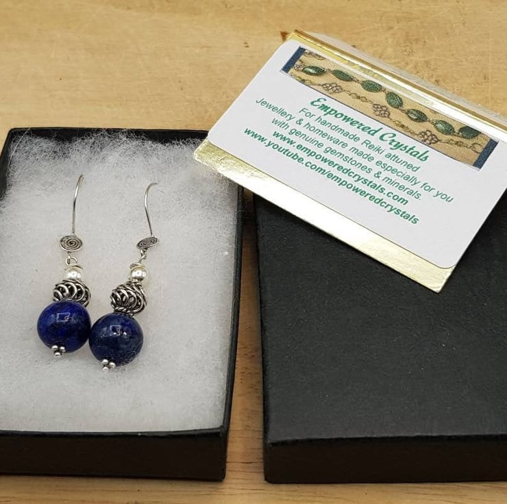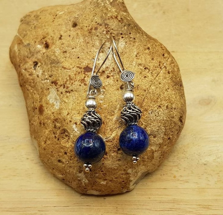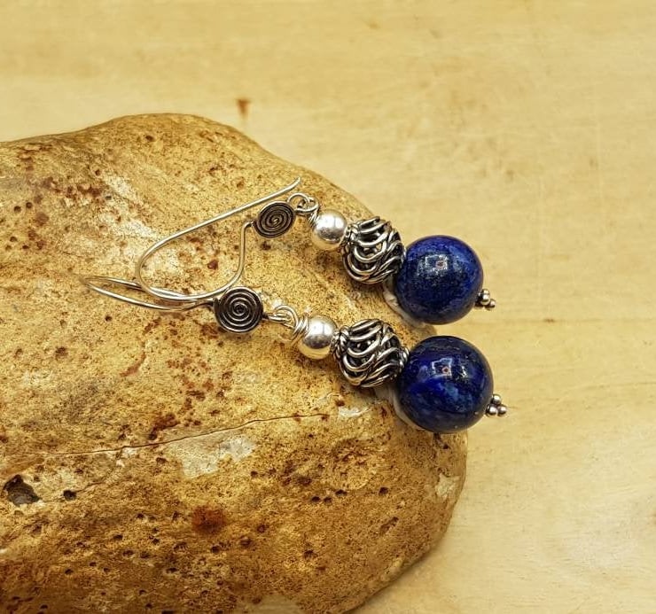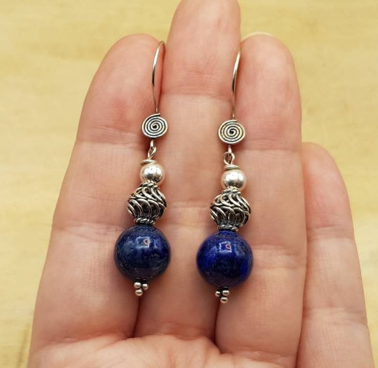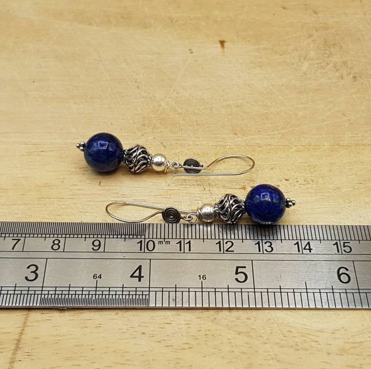 These are Bali silver Lapis Lazuli & Bali silver Bali bead sphere earrings.