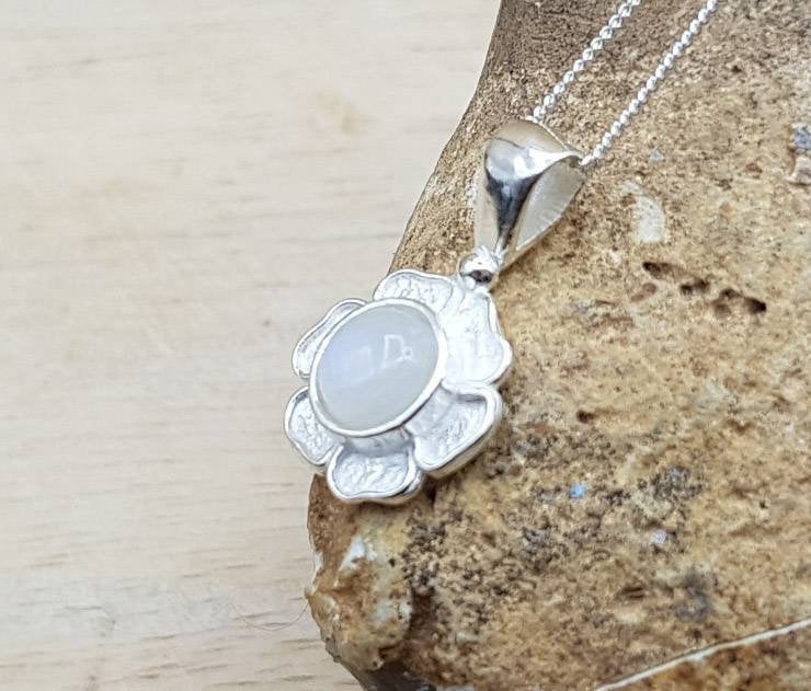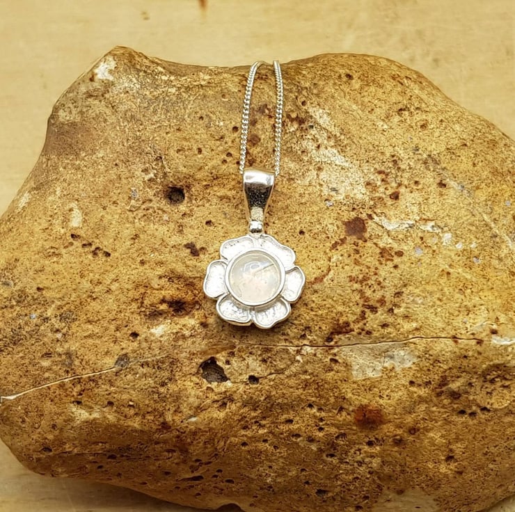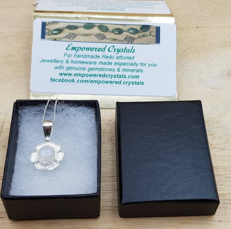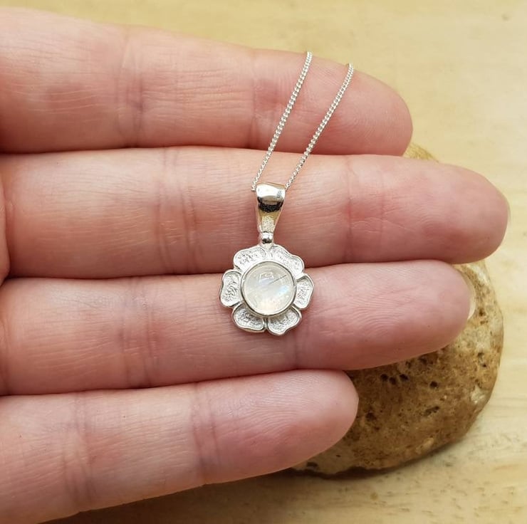 Tiny Rainbow Moonstone flower Pendant. Reiki jewellery. June birthstone