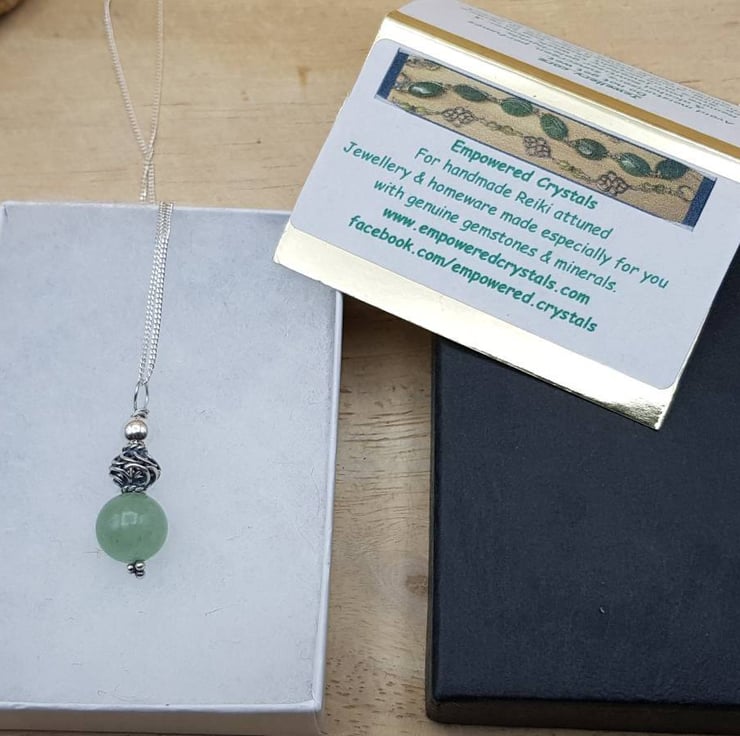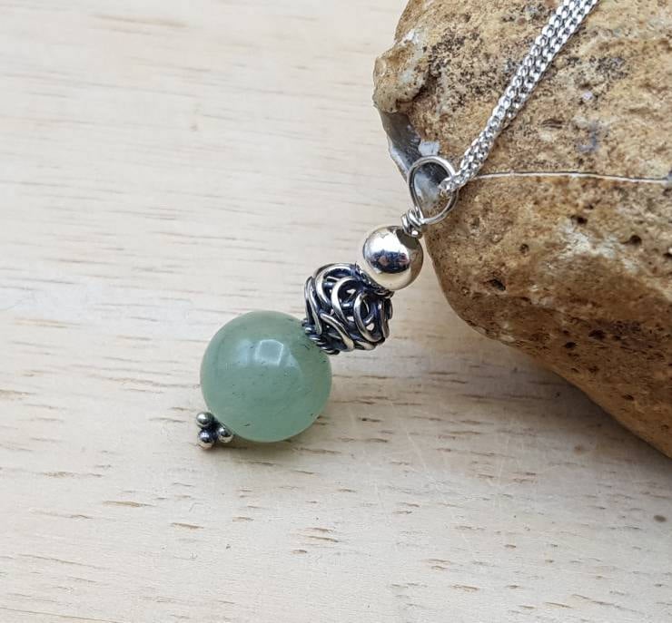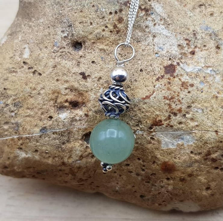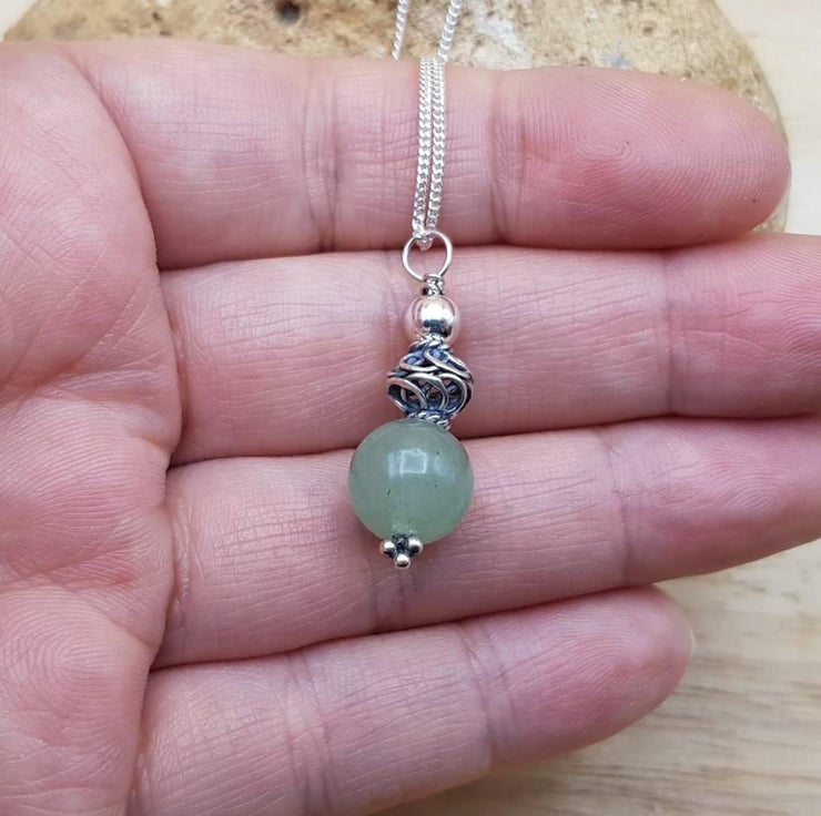 Small Green Aventurine pendant necklace. Bali silver beads. Reiki jewelry