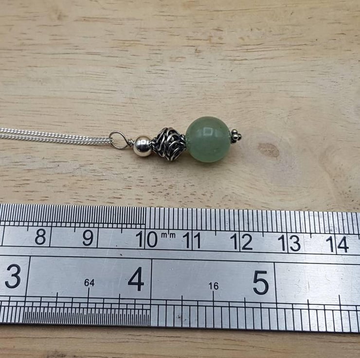 This is a small delicate sterling silver Green Aventurine Pendant necklace made with Bali silver beads which are handmade beads by the world renown silversmiths of Bali and contain up to 99% silver. Bali silver is not hallmarked or stamped.