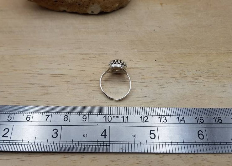 Sterling silver ring is adjustable so should fit most ring sizes.