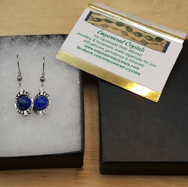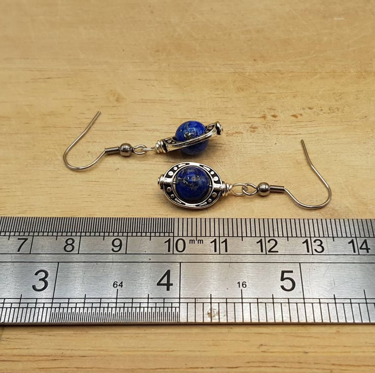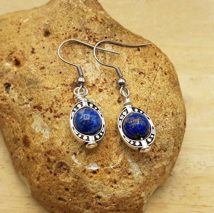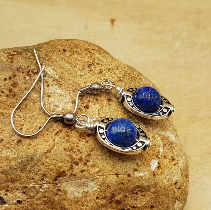 These are small silver plated oval frame Lapis Lazuli earrings.
