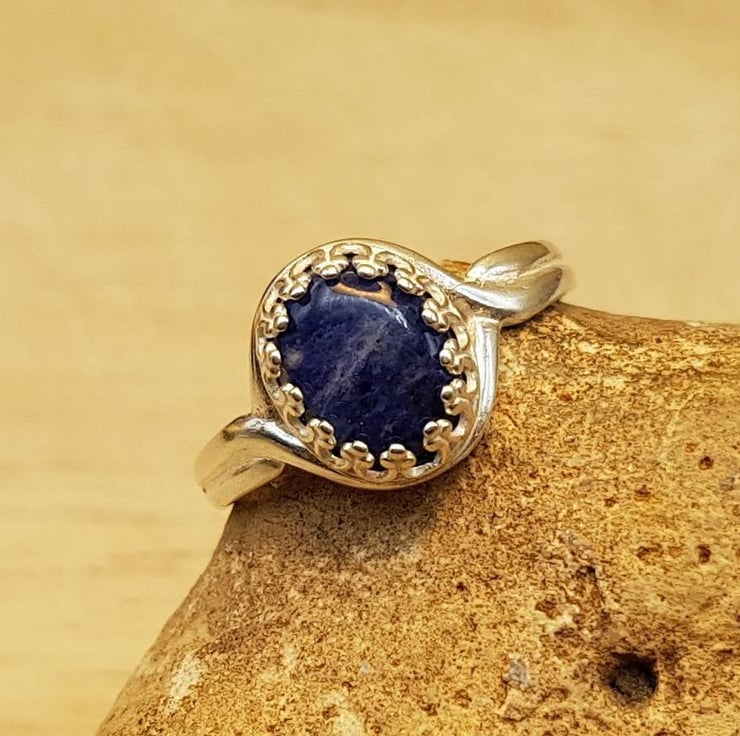 This is a lightweight sterling silver adjustable Sodalite ring.