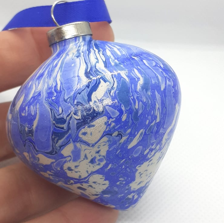 The baubles in this range are created in a slightly different way to my flat wooden shape ones. Instead of marbling onto a flat piece of paper, I marbled directly onto the ceramic surface - a technique which is much more difficult than it sounds! Each bauble is marbled from a different bath, so they are all different and totally unique. They are lots of fun to make and totally addictive!