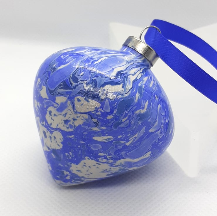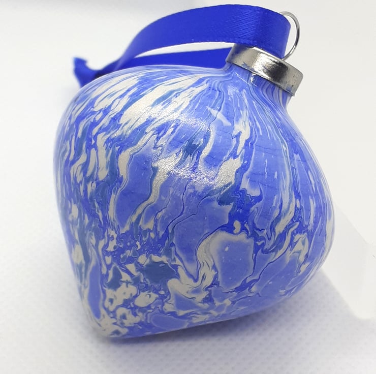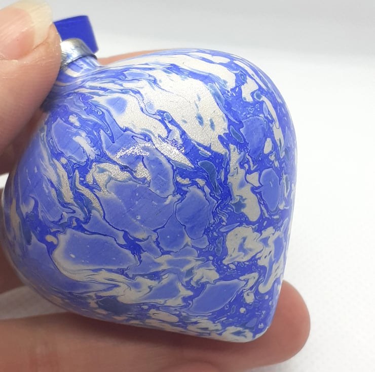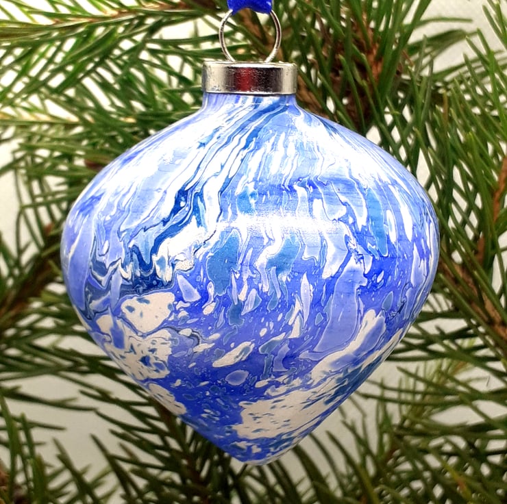 The winter storm bauble! This beautiful, unique ceramic Christmas bauble has a gorgeous palette of three different blues and silver.