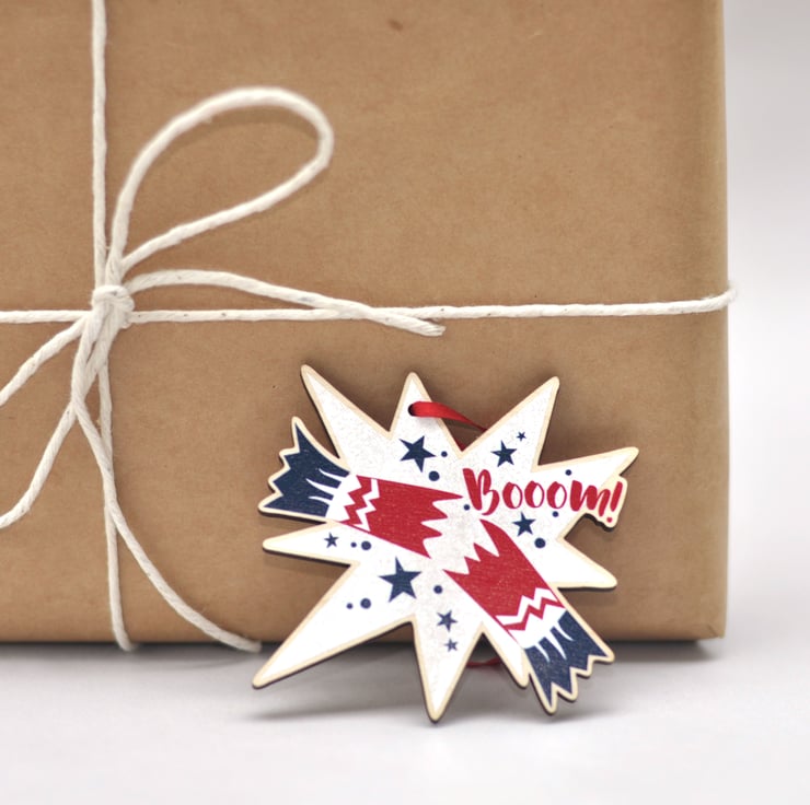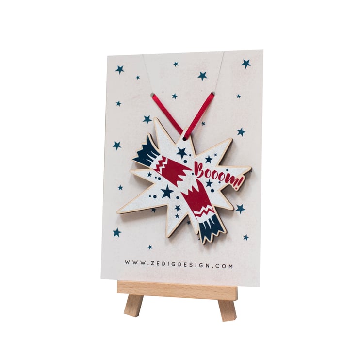 Booom! This fun Christmas cracker would make a great addition to your Christmas tree! It is made of printed wood and comes with a red ribbon. This Christmas cracker decoration is part of my Festive Feelings range - please see my other listings for more designs.