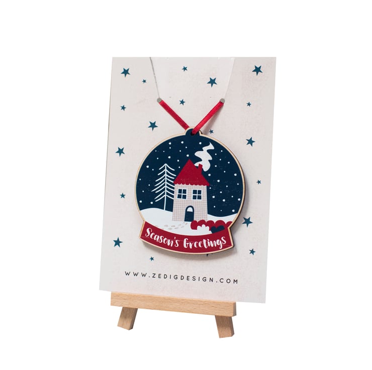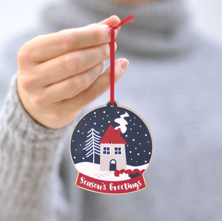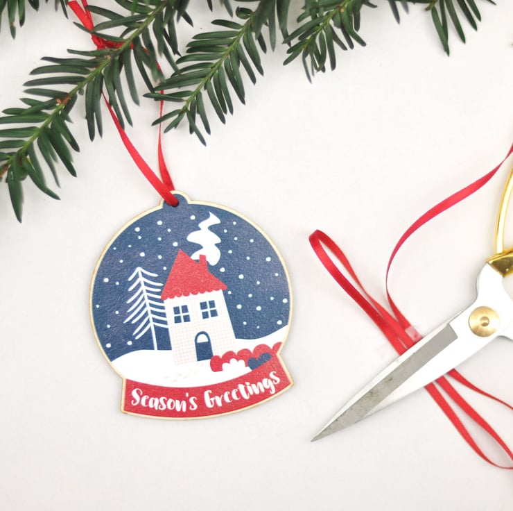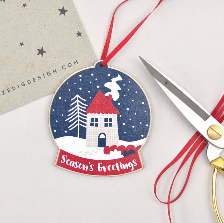 Let it snow, let it snow, let it snow! Here's to a white Christmas this year. This festive snow globe decoration is made of printed wood and comes with a red ribbon. It is part of my Festive Feelings range - please see my other listings for more designs.
