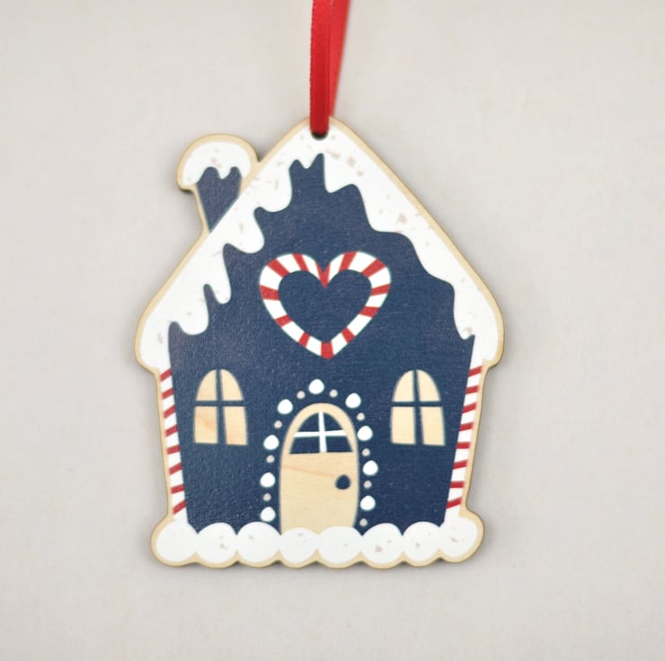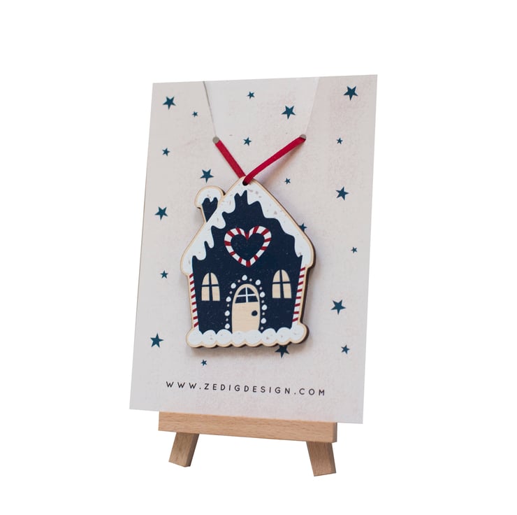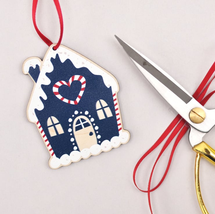 This delicious-looking ginger bread house would make a yummy addition to your Christmas tree this season. The decoration is made of printed wood and comes with a red ribbon. It is part of my Festive Feelings range - please see my other listings for more designs.