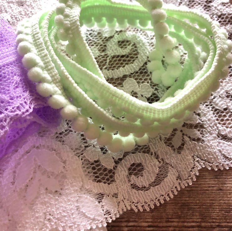1 x metre dainty soft green pom pom trim