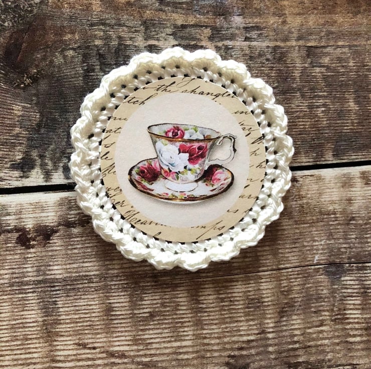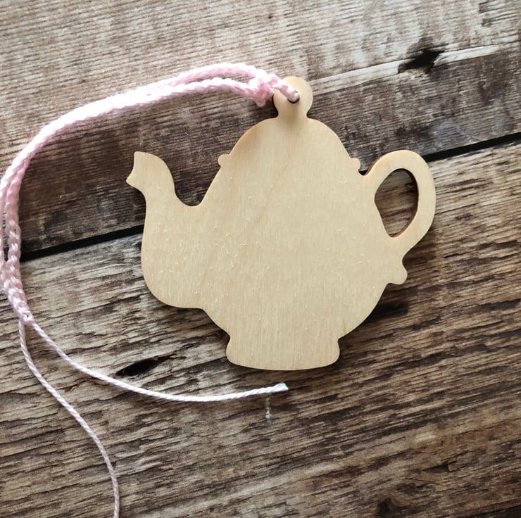 1 x blank wooden teapot decoration to alter with hand crocheted string (you can remove string if you wish)