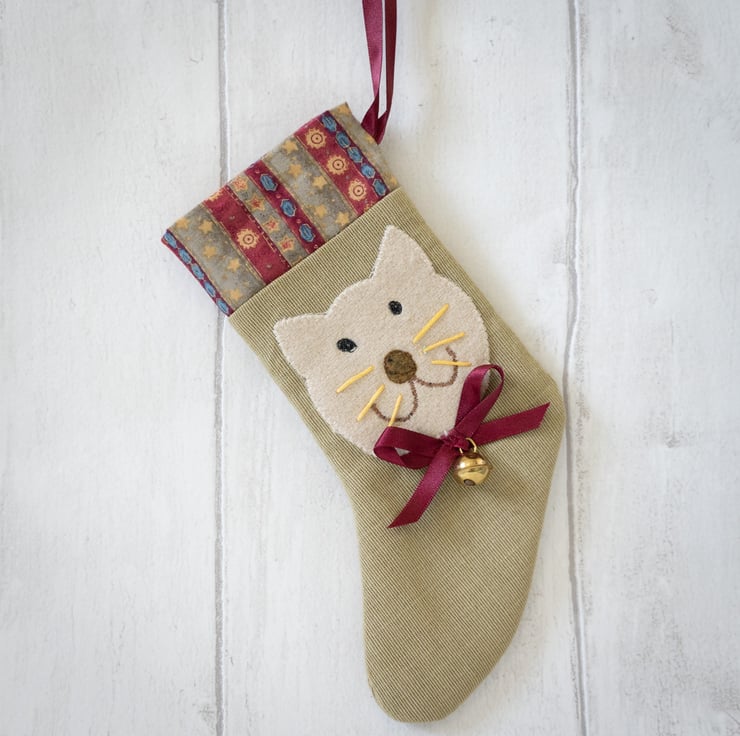This Christmas stocking decoration is perfect or any cat lover and would look great hung on a tree, mantlepiece or at the end of the bed on Christmas Eve!