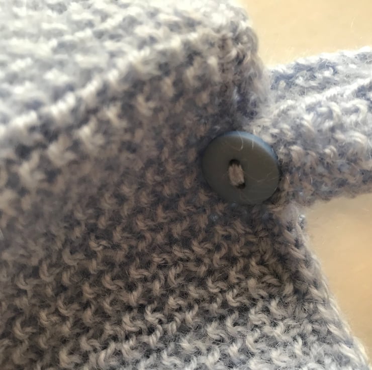 Please note that the button is firmly sewn on but care should be taken to ensure it remains secure.