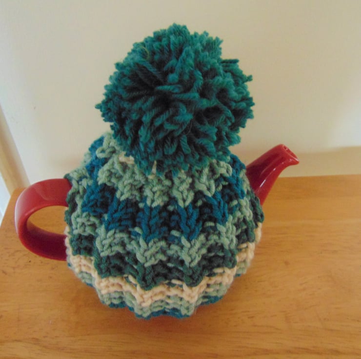 Made with gorgeous merino acrylic mix yarn,in shades of green and cream.