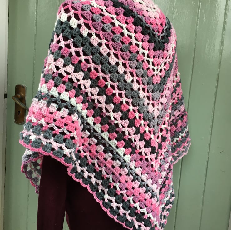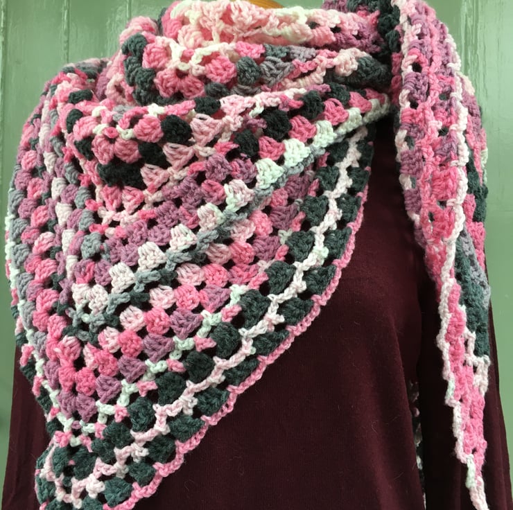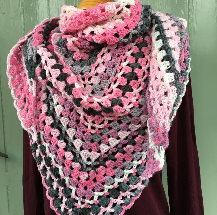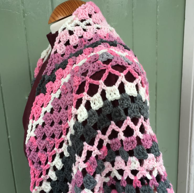 Using a soft DK weight yarn in pinks and greys, I created this easy wear scarf to liven up the Winter blues