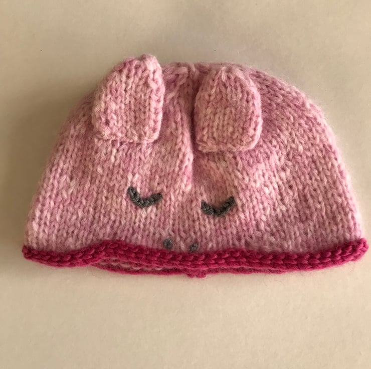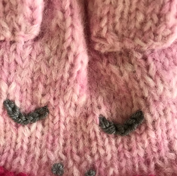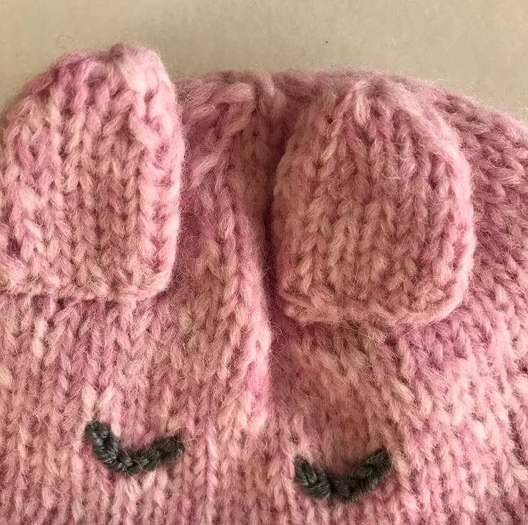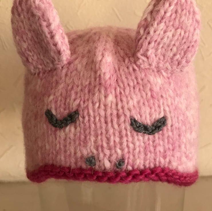 It has a piglet face and ears and is edged with a darker shade of pink.