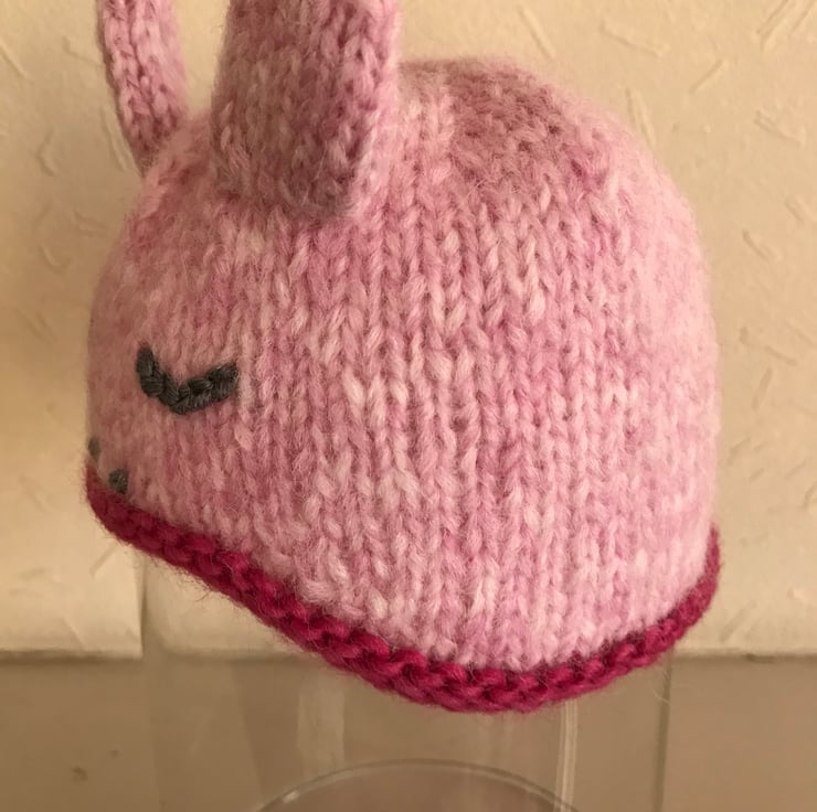 This cute little hat is hand knitted in a wonderfully soft alpaca blend yarn which is slightly fluffy.