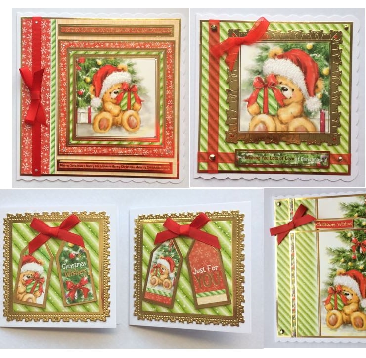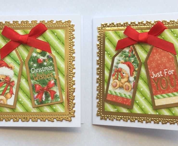 This is a lovely luxury 3D handmade matching set of five greeting cards to give to friends or family for Xmas.