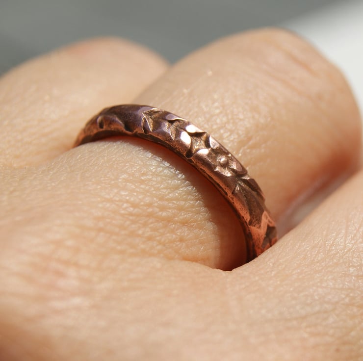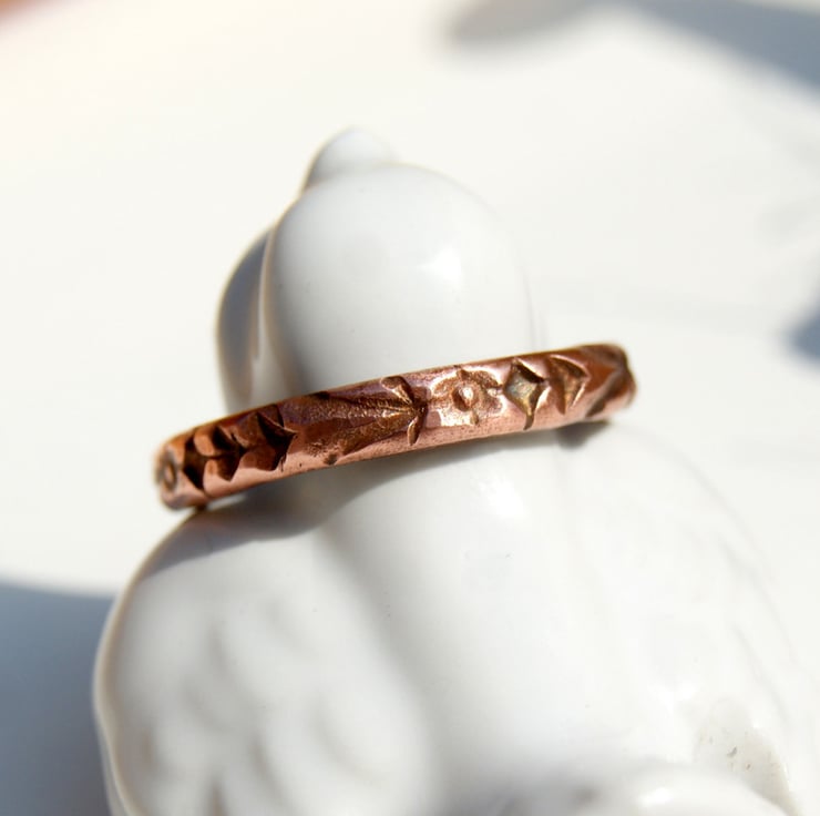 This copper ring is hand cut and formed using traditional jewellery tools.