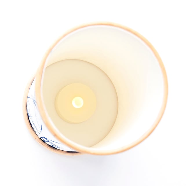 Please note each candle cover is unique and hand-made to order. Due to the nature of the cyanotype process the blues may vary slightly.