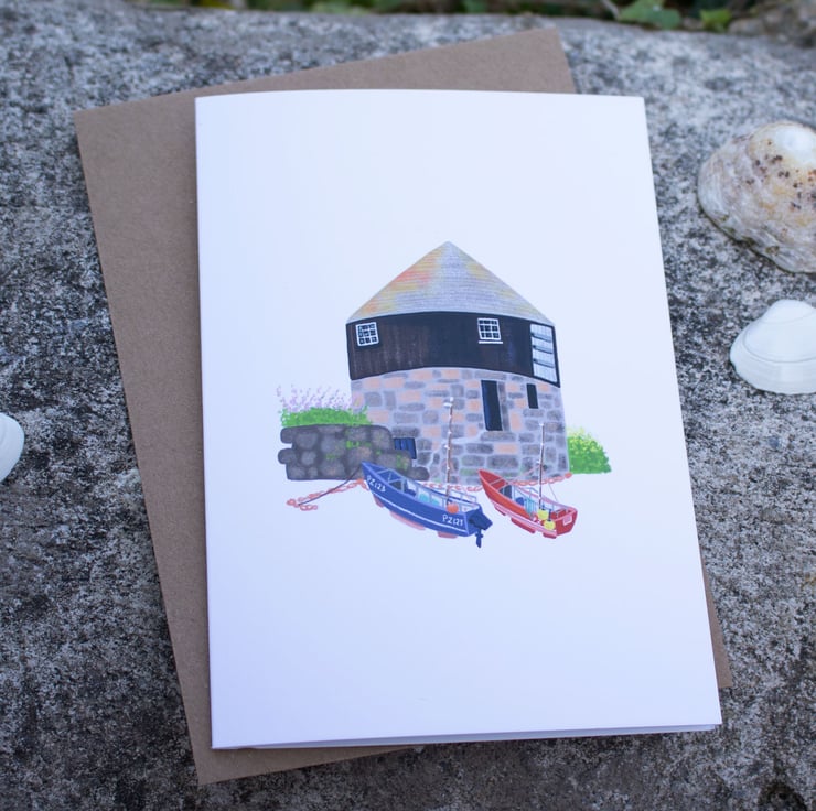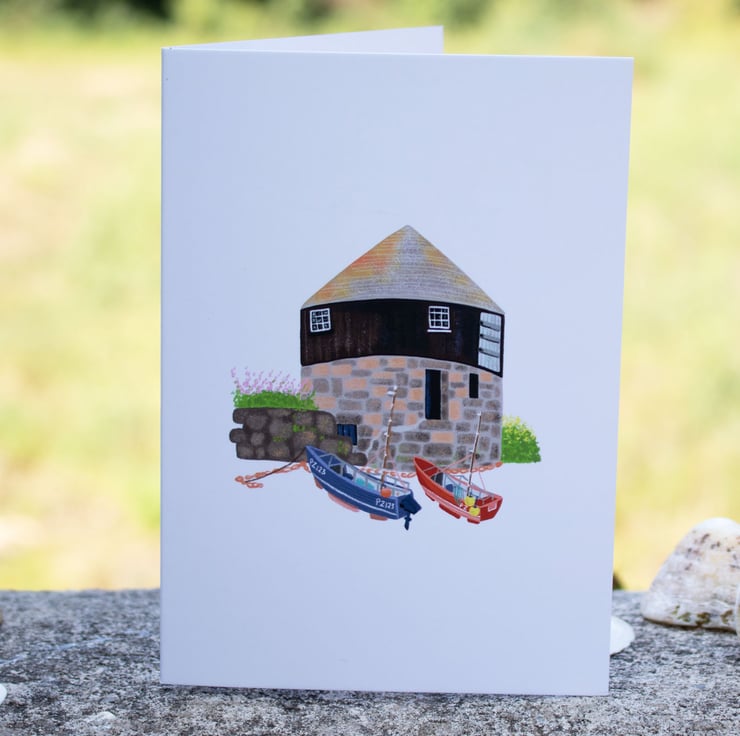 The Roundhouse, Sennen Cove illustrated greeting card, note card or thank you card.