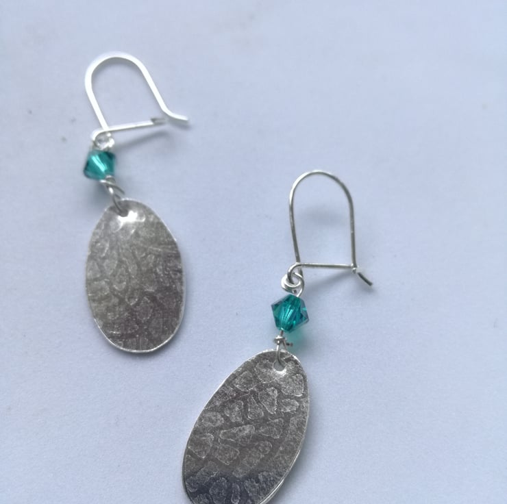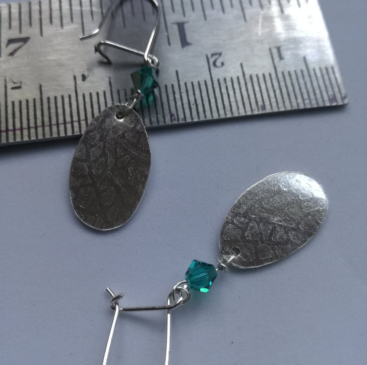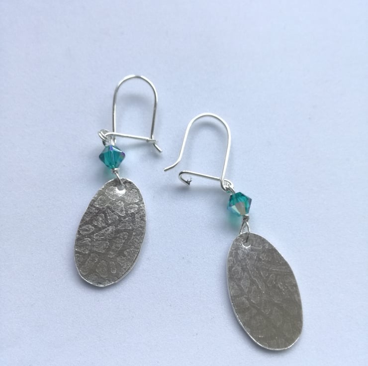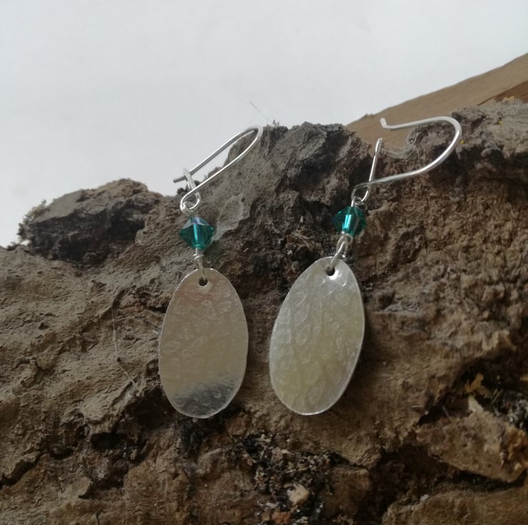 These earrings are lovely and light to wear but also move enough to catch the light and be of interest. They are hammered silver so catch the light as you move.