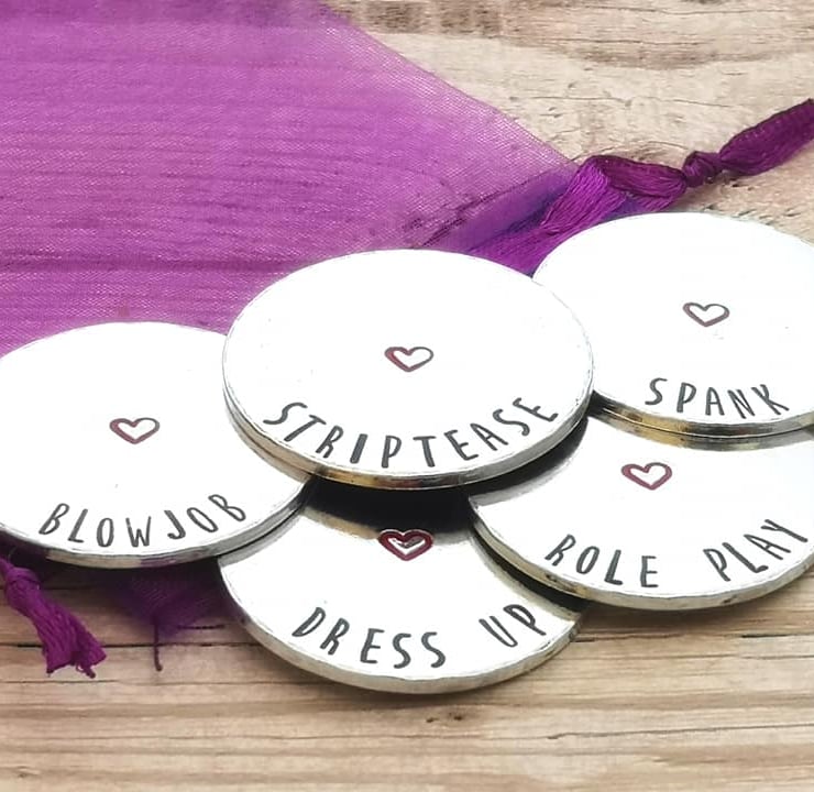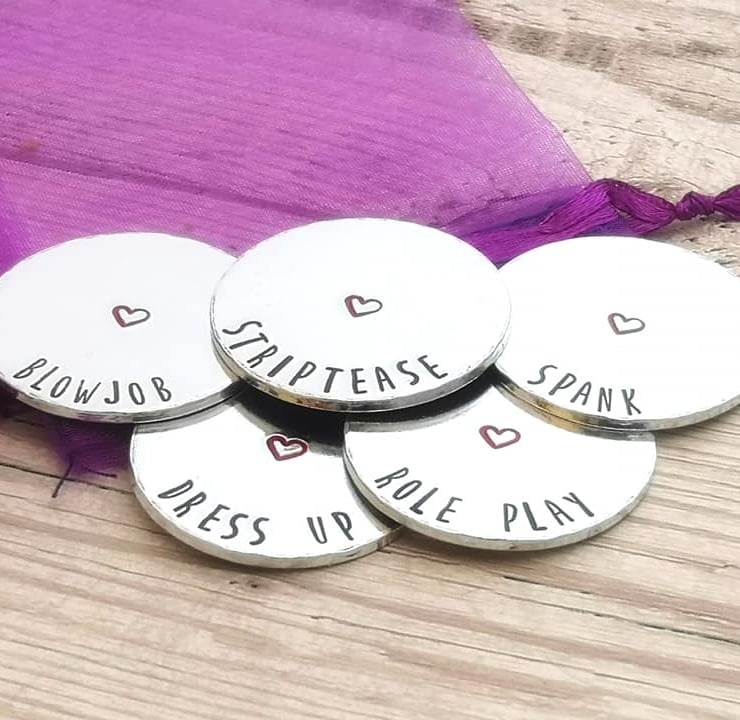 These rude love tokens would make a cheeky gift for a special someone. Choose set worded tokens, or create your own fun and sexy tokens using your own words.