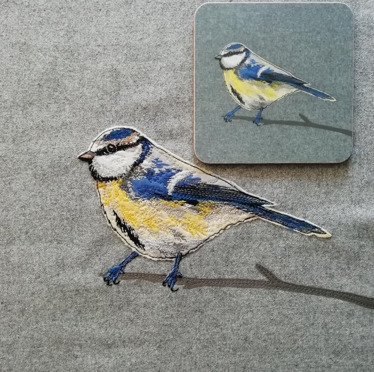 My designs are inspired by British wildlife. I create them using a combination of appliqué and freehand machine embroidery. The designs are then scanned and digitally printed on coasters and greetings cards, and are all listed on my Folksy shop.