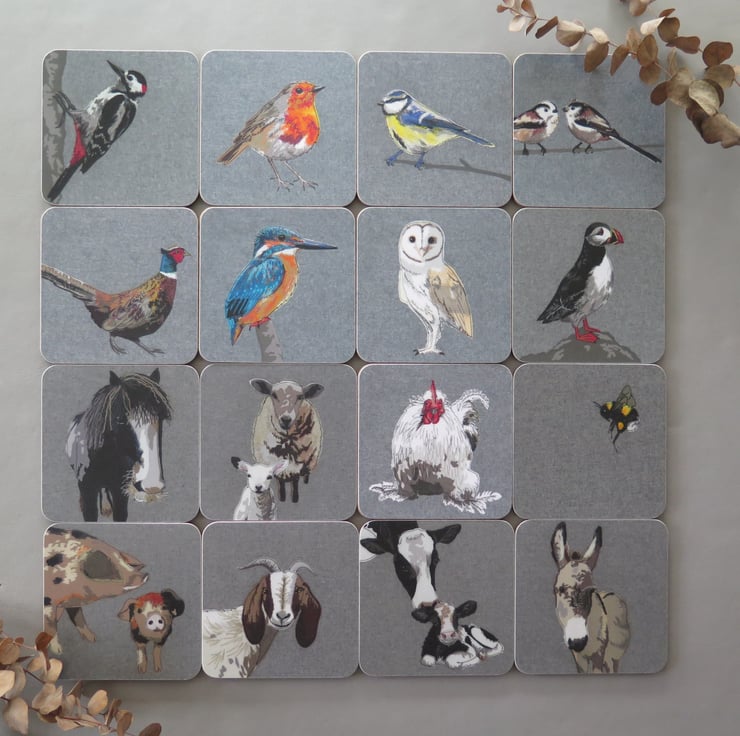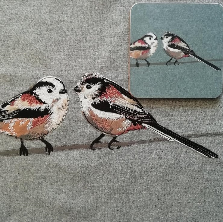 My designs are inspired by British wildlife. I create them using a combination of appliqué and freehand machine embroidery. The designs are then scanned and digitally printed on coasters and greetings cards, and are all listed on my Folksy shop.