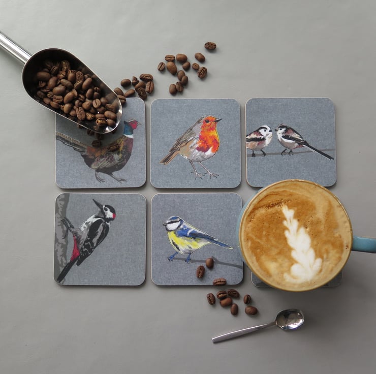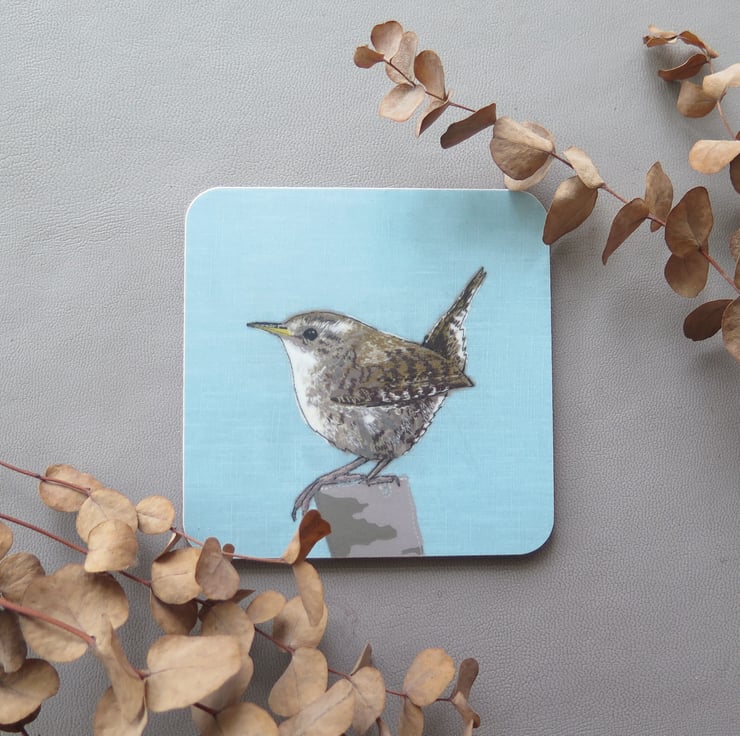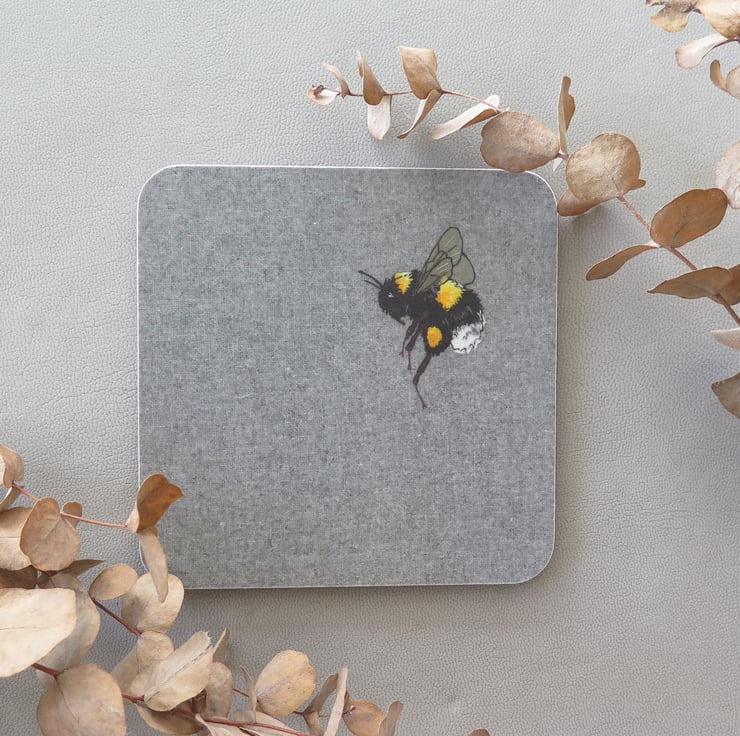 My designs are inspired by British wildlife. I create them using a combination of appliqué and freehand machine embroidery. The designs are then scanned and digitally printed on coasters and greetings cards, and are all listed on my Folksy shop.