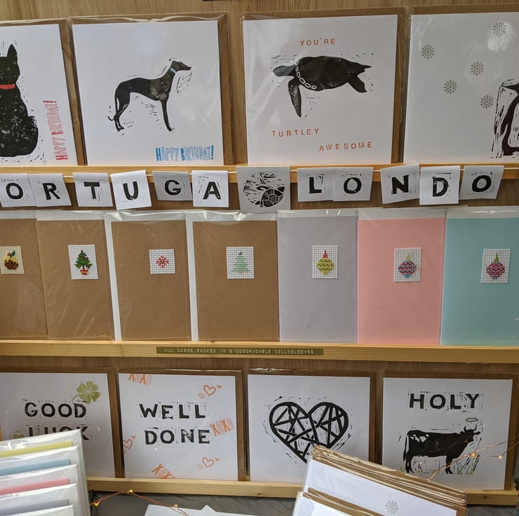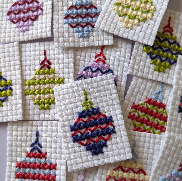A Mix of hand stitched baubles on pastel card, each one is different so you will get a combination of three different colour ways - if there is a particular card colour you would like, just let me know! A6 cards that come with white envelopes in a biodegradable cello sleeve.
