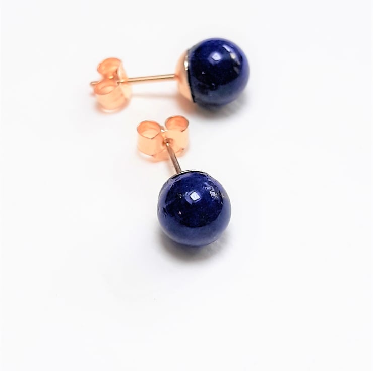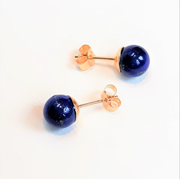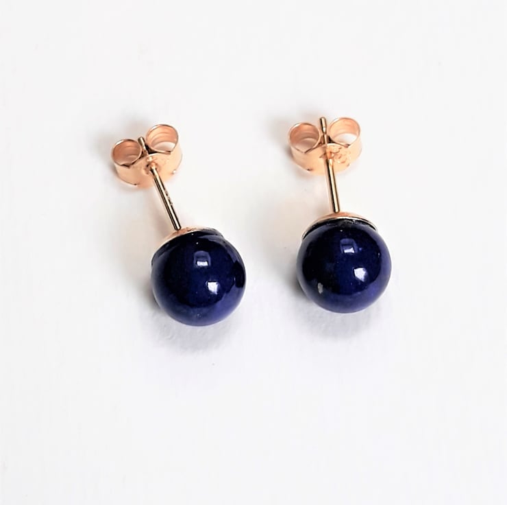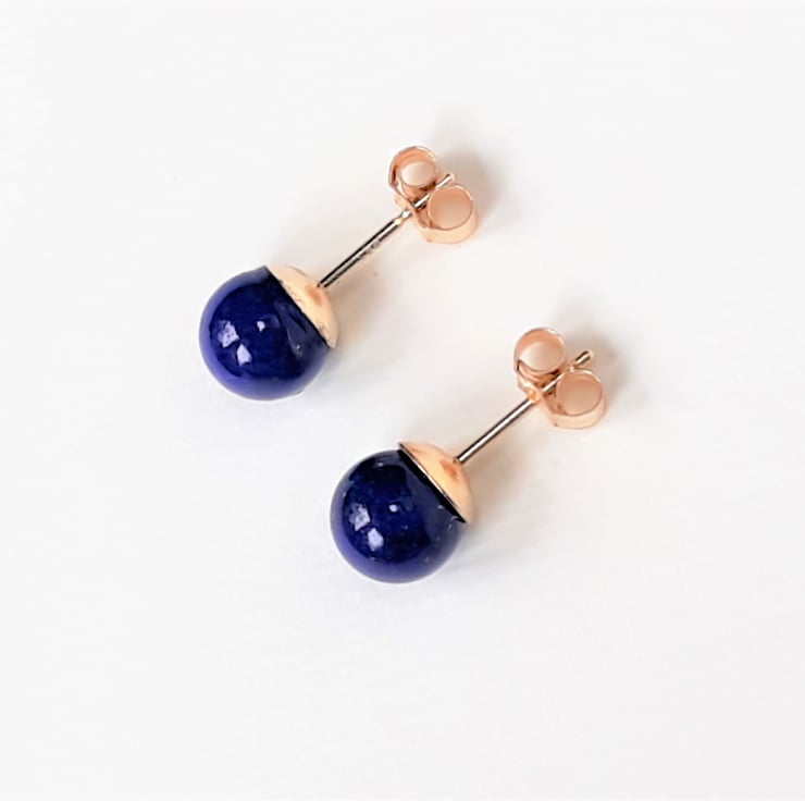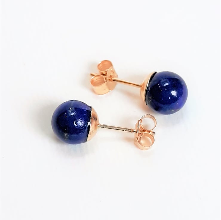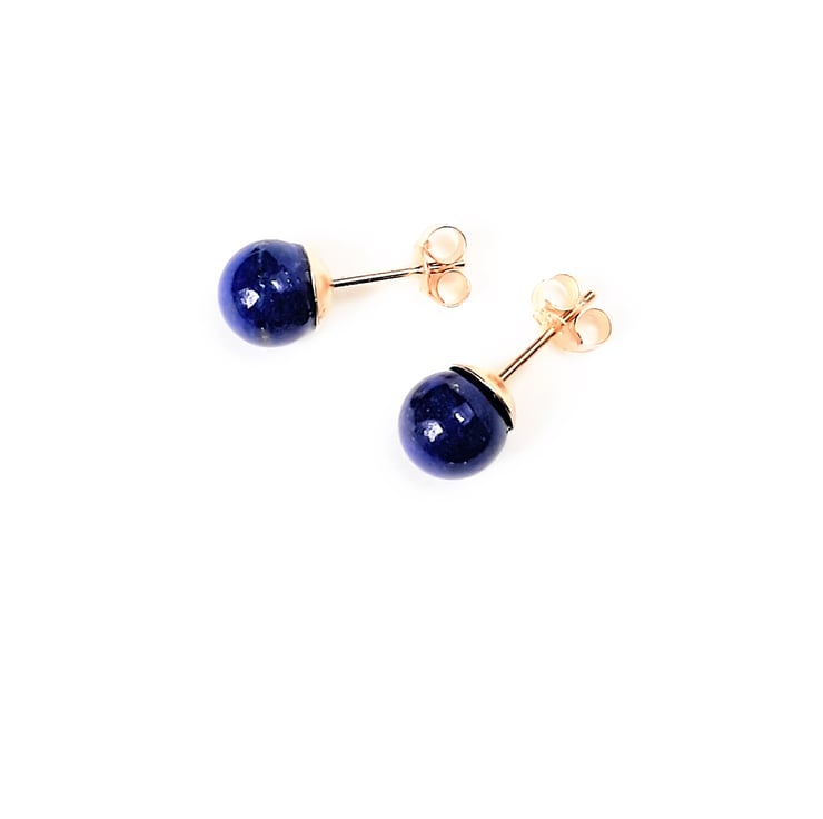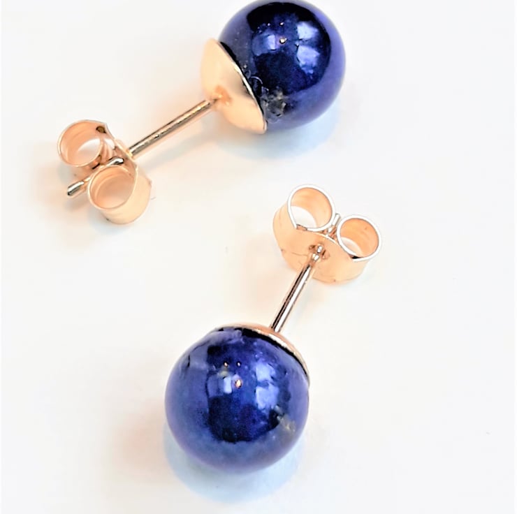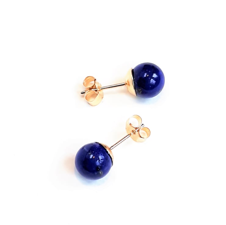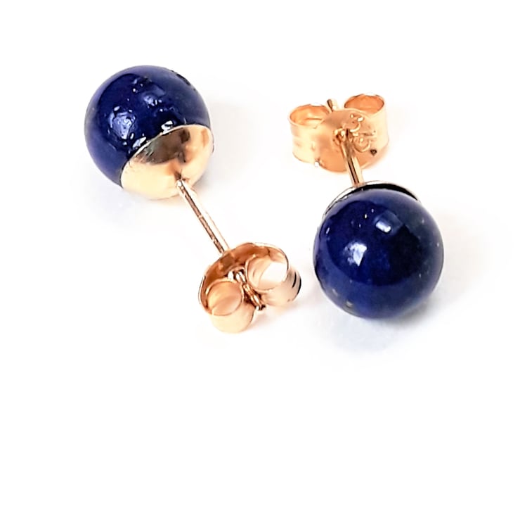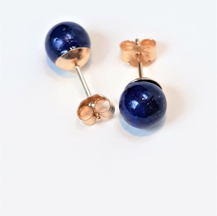 These stud earrings are solid 9ct gold including the backs. Each has a rich blue round Lapis Lazuli stone which measures approximately 6mm / 0,23" diameter.