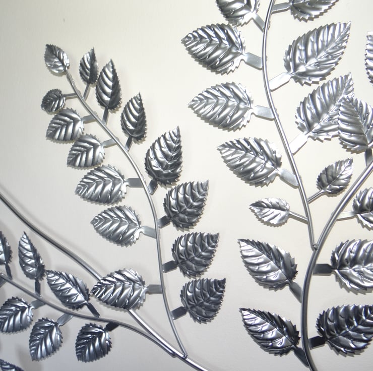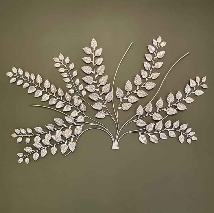 Enjoy the luxury of free shipping and the flexibility of custom designs in various colours. If you're in search of a distinctive and eye-catching addition to your wall décor, this silver leaf wall hanging is an exceptional choice. Elevate your home with a piece that truly stands out.
