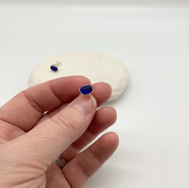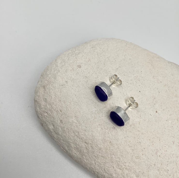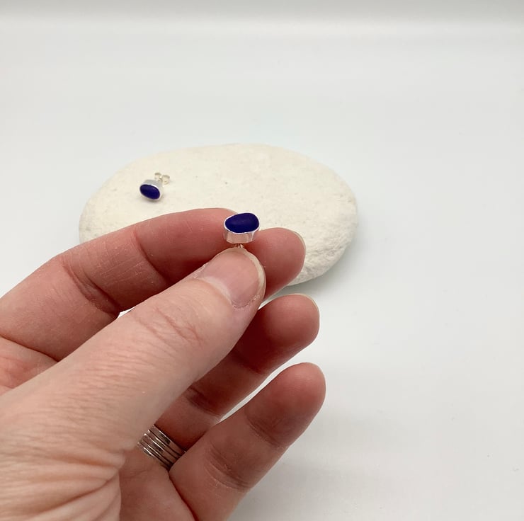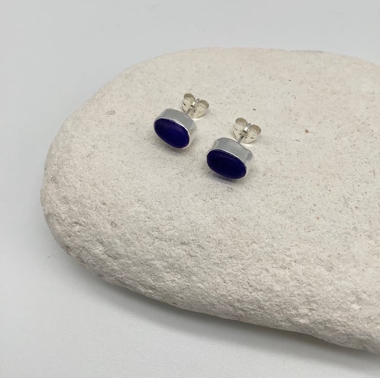 These stud earrings have been made using hand collected sea glass and sterling silver.