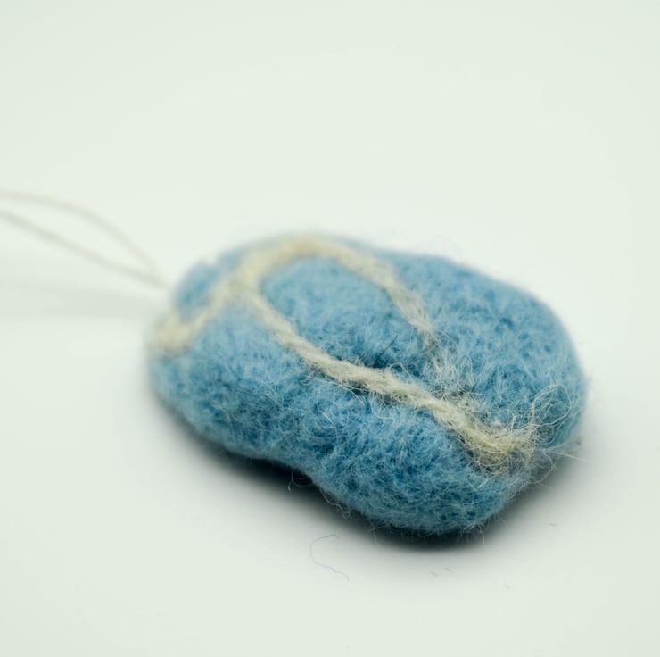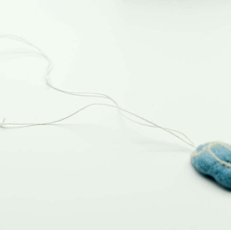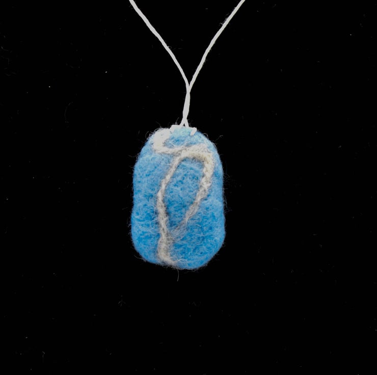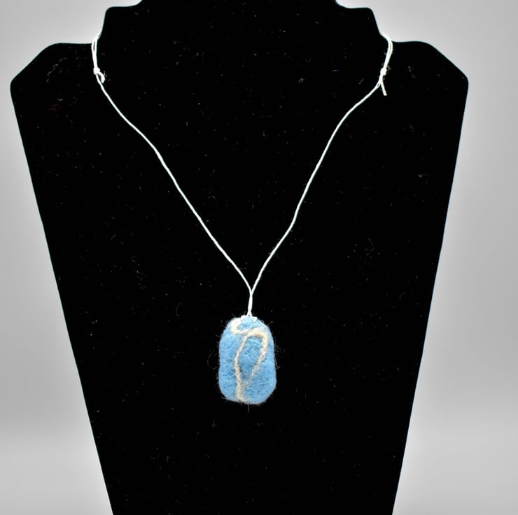 This statement necklace has been created using by needle felting blue and white wool into a marble effect pebble strung on white 0.5mm hemp cord.