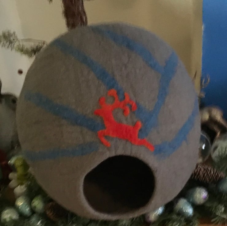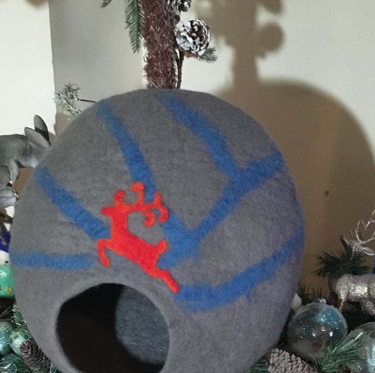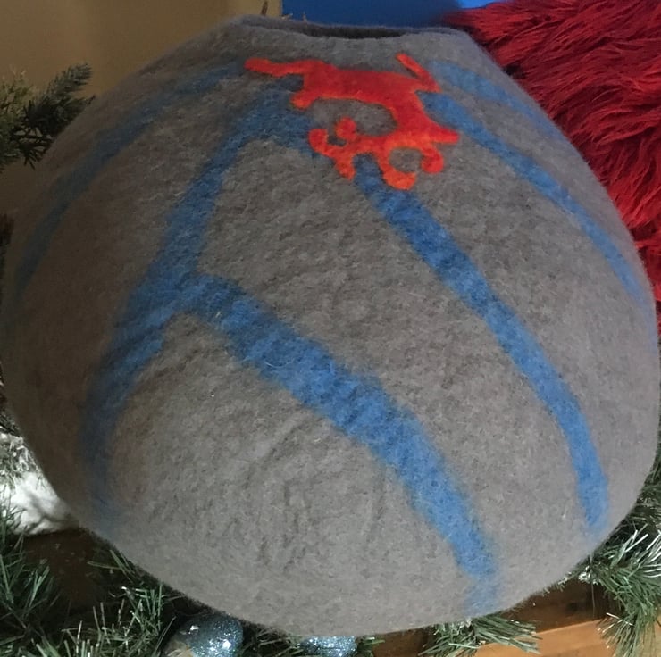 Handcrafted cat cave felted from wool by the method of wet Felting.