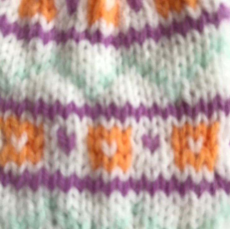 I loved the zigzag pattern on these mittens and decided to try knitting the size which had thumbs. It took some concentration as they are knit in the round. Following the fair isle pattern was challenging but the finished result looks good.