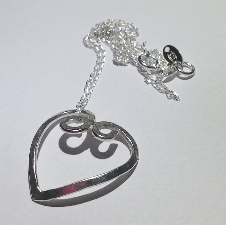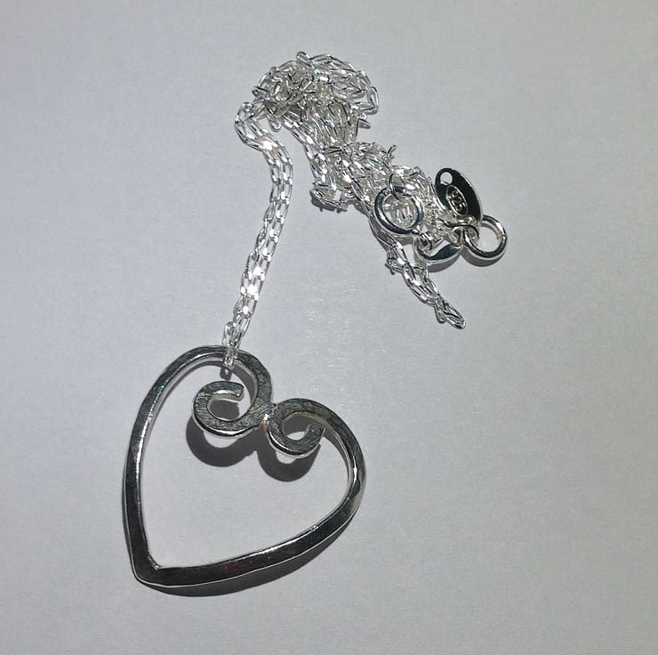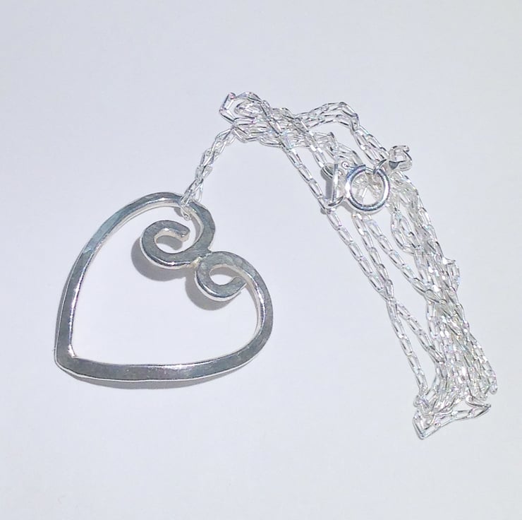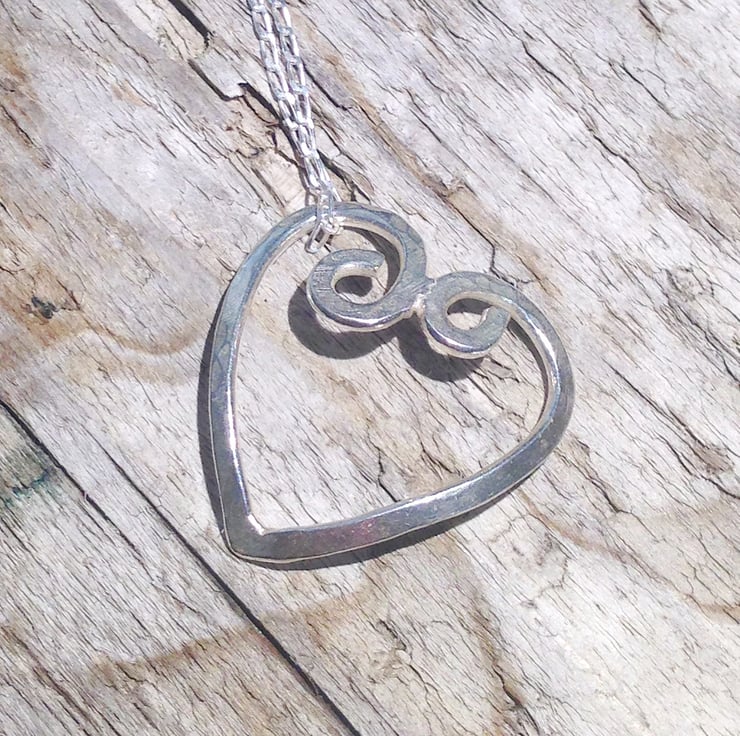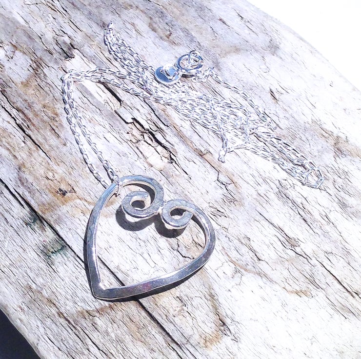 This beautiful heart shaped pendant necklace is hand crafted in sterling silver with a hammered finish