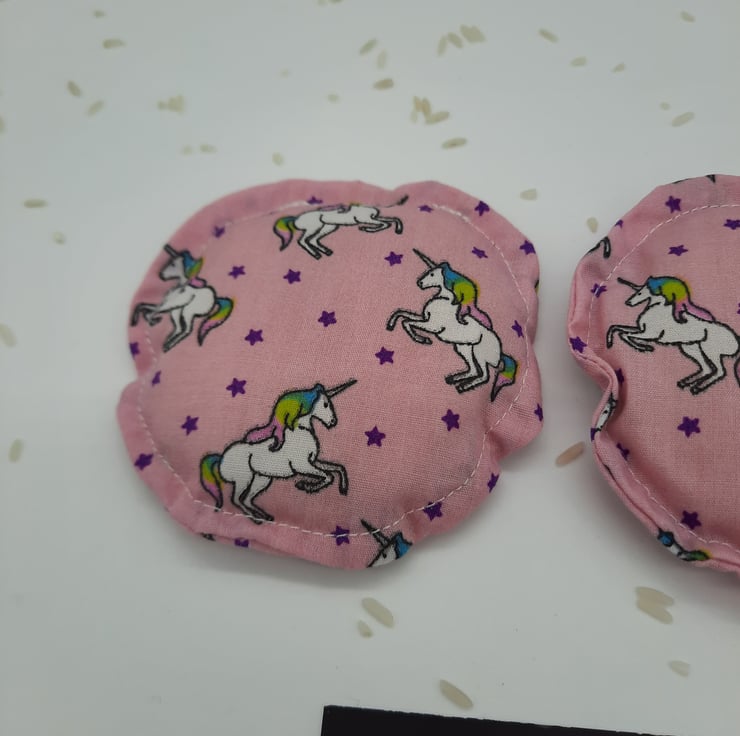 Heat pads  - hand warmers, rice filled in unicorn fabric.