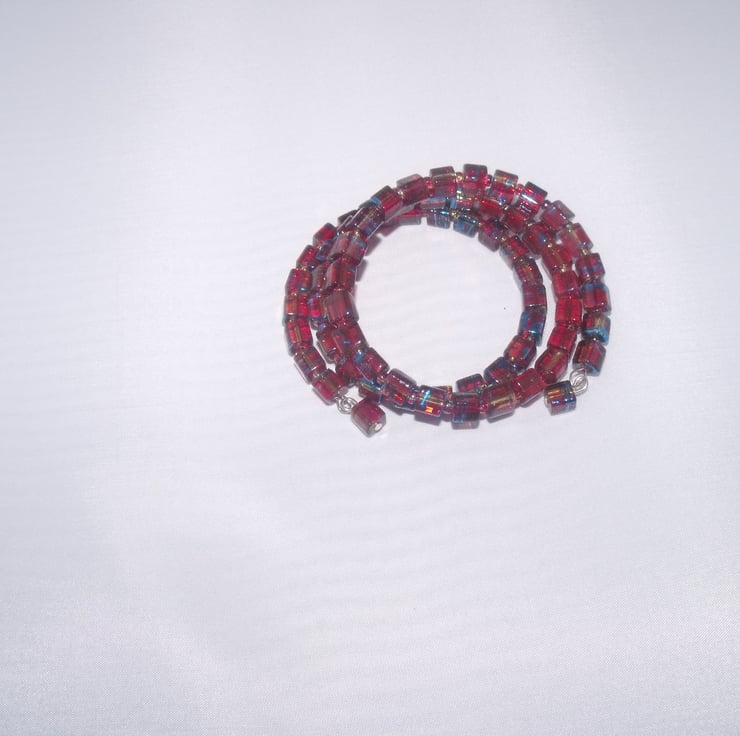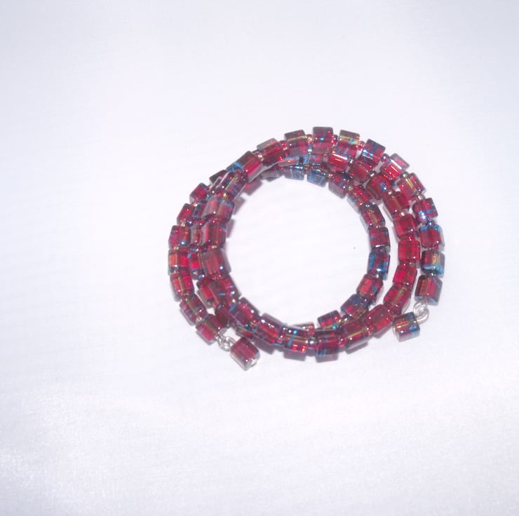 I love these beads when they catch the light as they seem to change colour. The memory wire is great not to have a clasp to struggle with