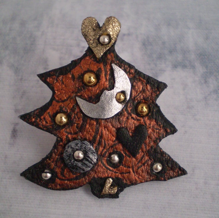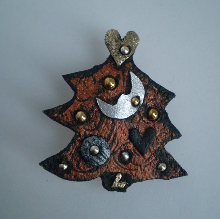 Cute little tree brooch hand painted in a bronze autumnal colour.