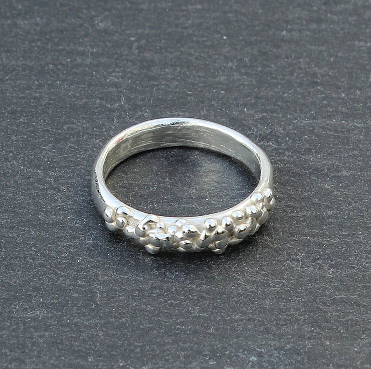 Sterling silver ring made using the lost wax casting method. This ring is size R. Other sizes made to order - please allow 2-3 weeks for delivery as the ring is made in wax first, then cast by a professional caster. Please contact me (and include the UK ring size) if you would like this design in a different size.