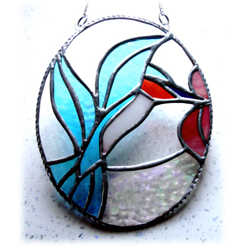This is a stained glass suncatcher handmade using the Tiffany copper foil technique.