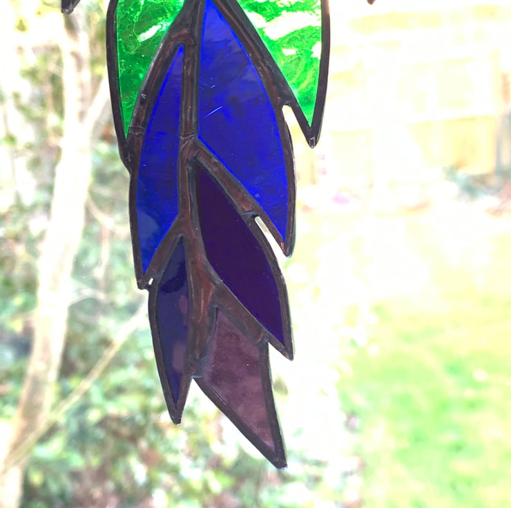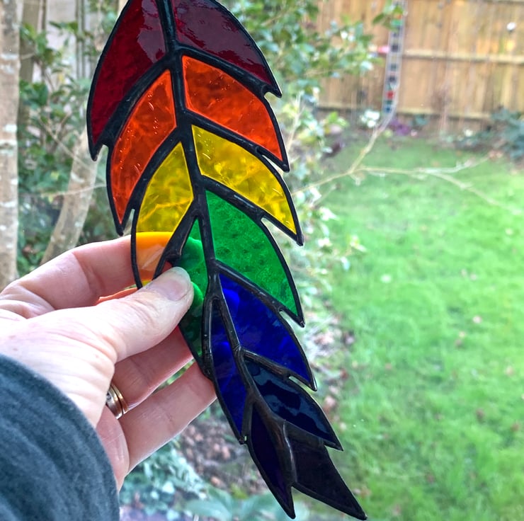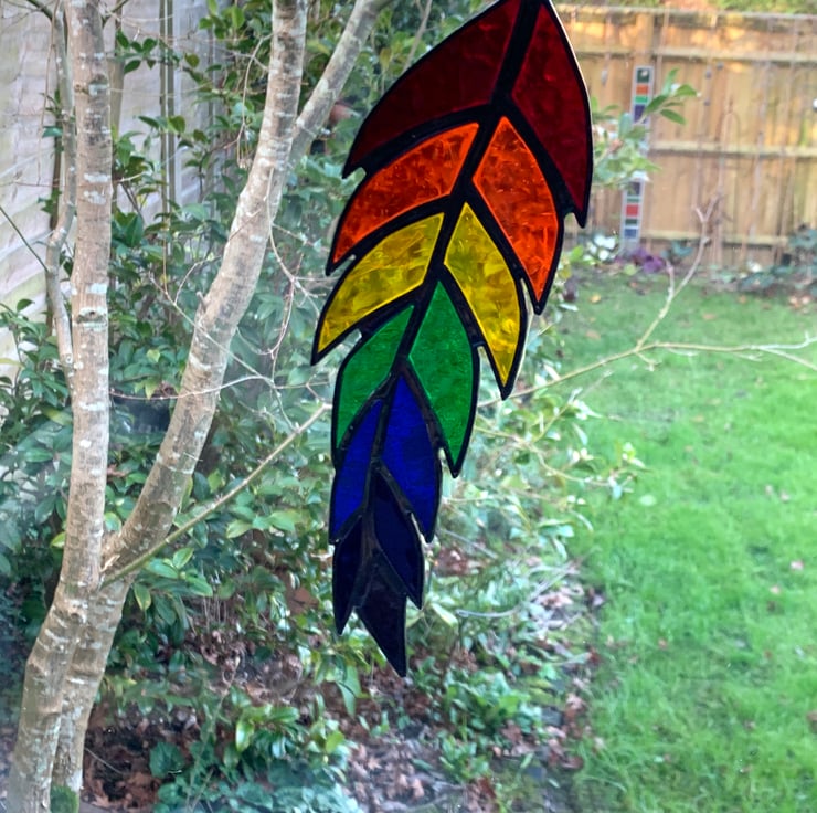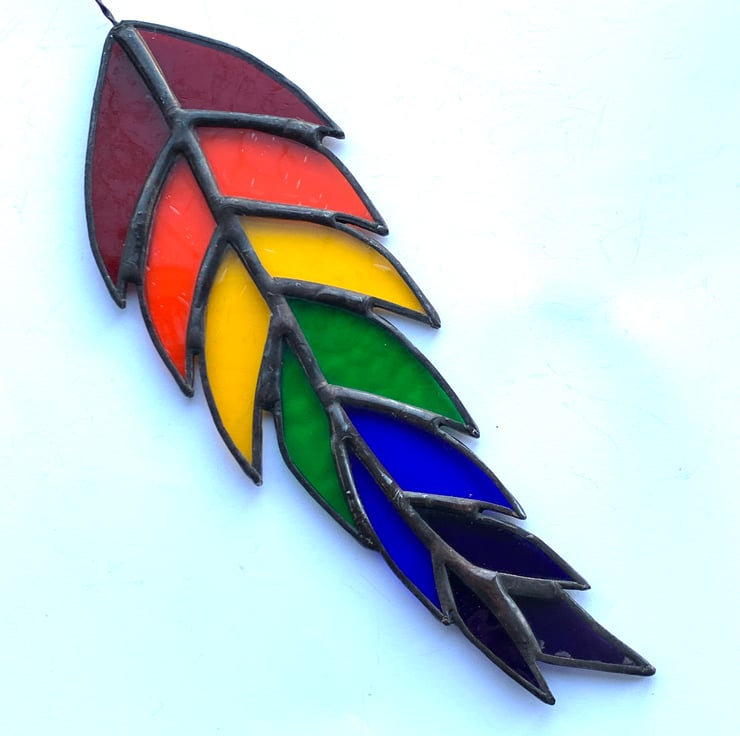 This feather has been made from 7 types of vibrantly coloured stained glasswhich are also the colours of the chakra.