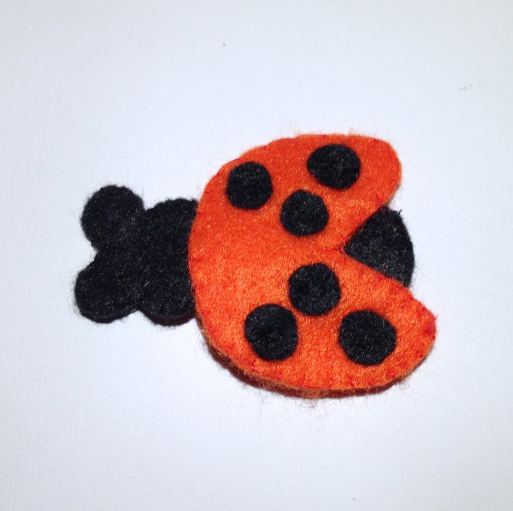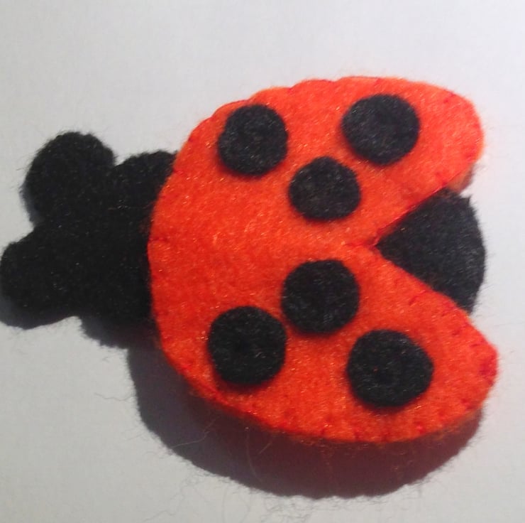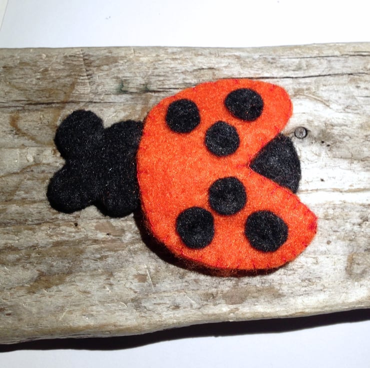 This super cute ladybird brooch is hand stitched from felt and measures approx 6.5 cm x 5.25 cm. The brooch pin is silver plated.