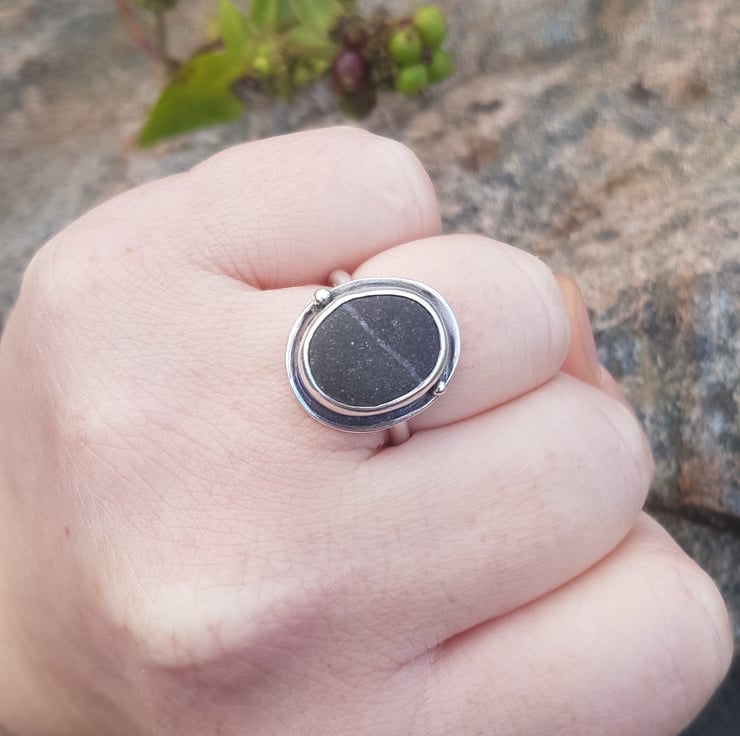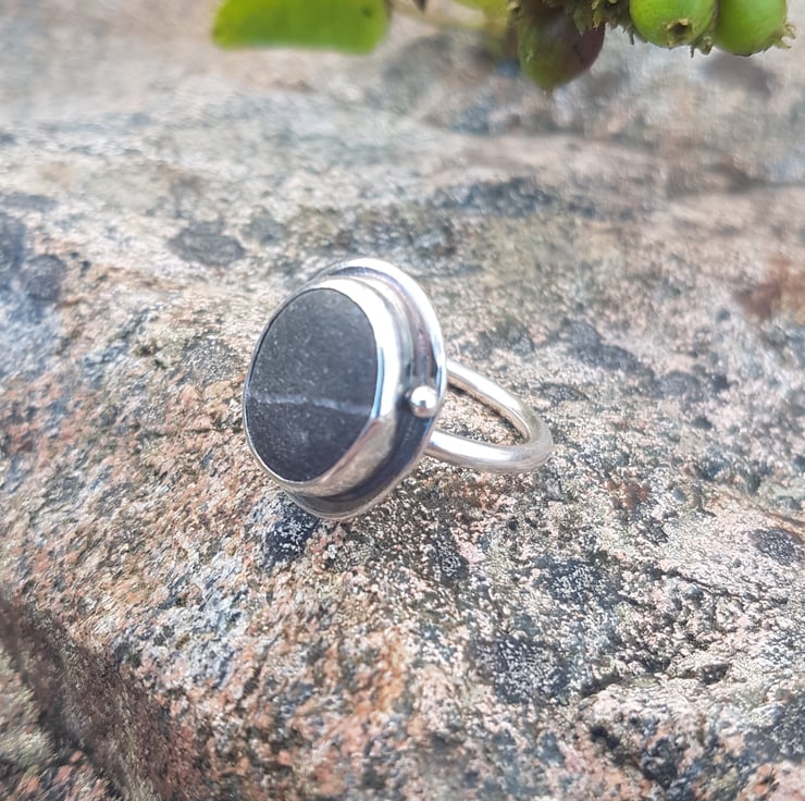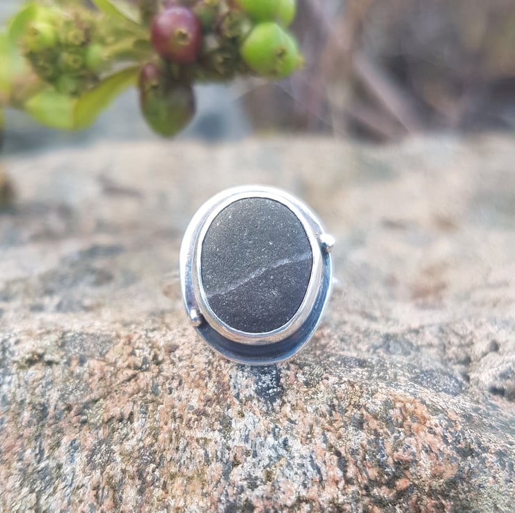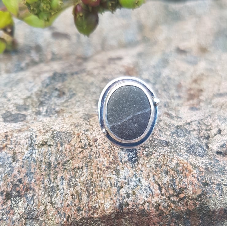 This gorgeous ring is made from a sea worn pebble known as a wishing stone.